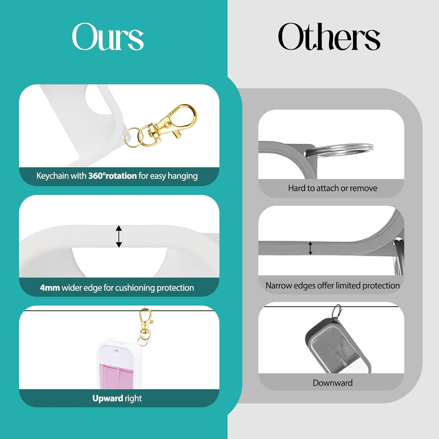 - 360° Rotating Keychain for Convenience: Equipped with a keychain featuring 360° rotation, the case can be easily attached to bags, keys, or belts for effortless portability, keeping your hand sanitizer always within reach.