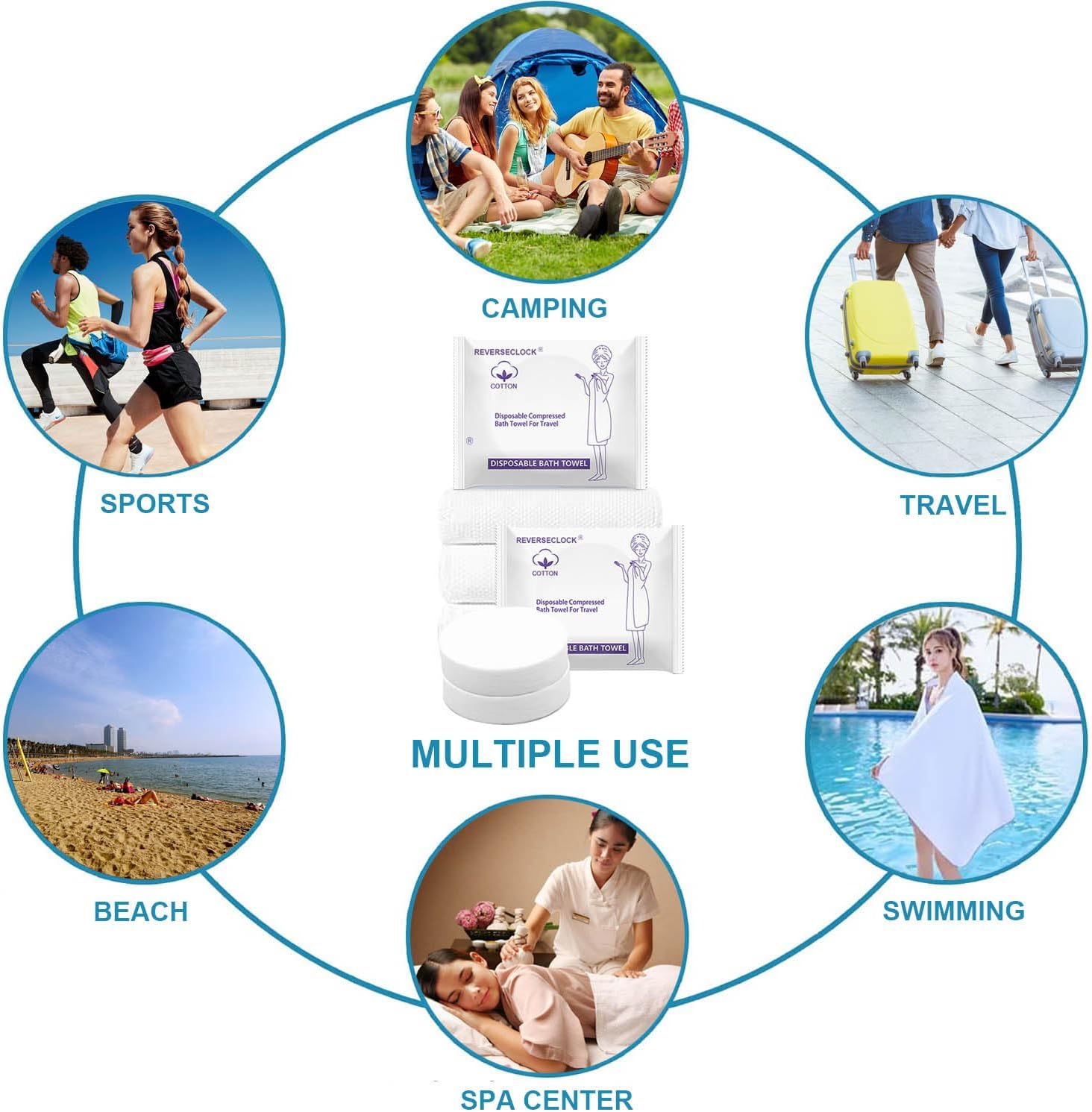 10 Pack Large Compressed Bath Towels Portable Lightweight Disposable Cotton Fiber Tablets Towel for Travel, Camping, Gym, Swimming, Beach (55" X 28")