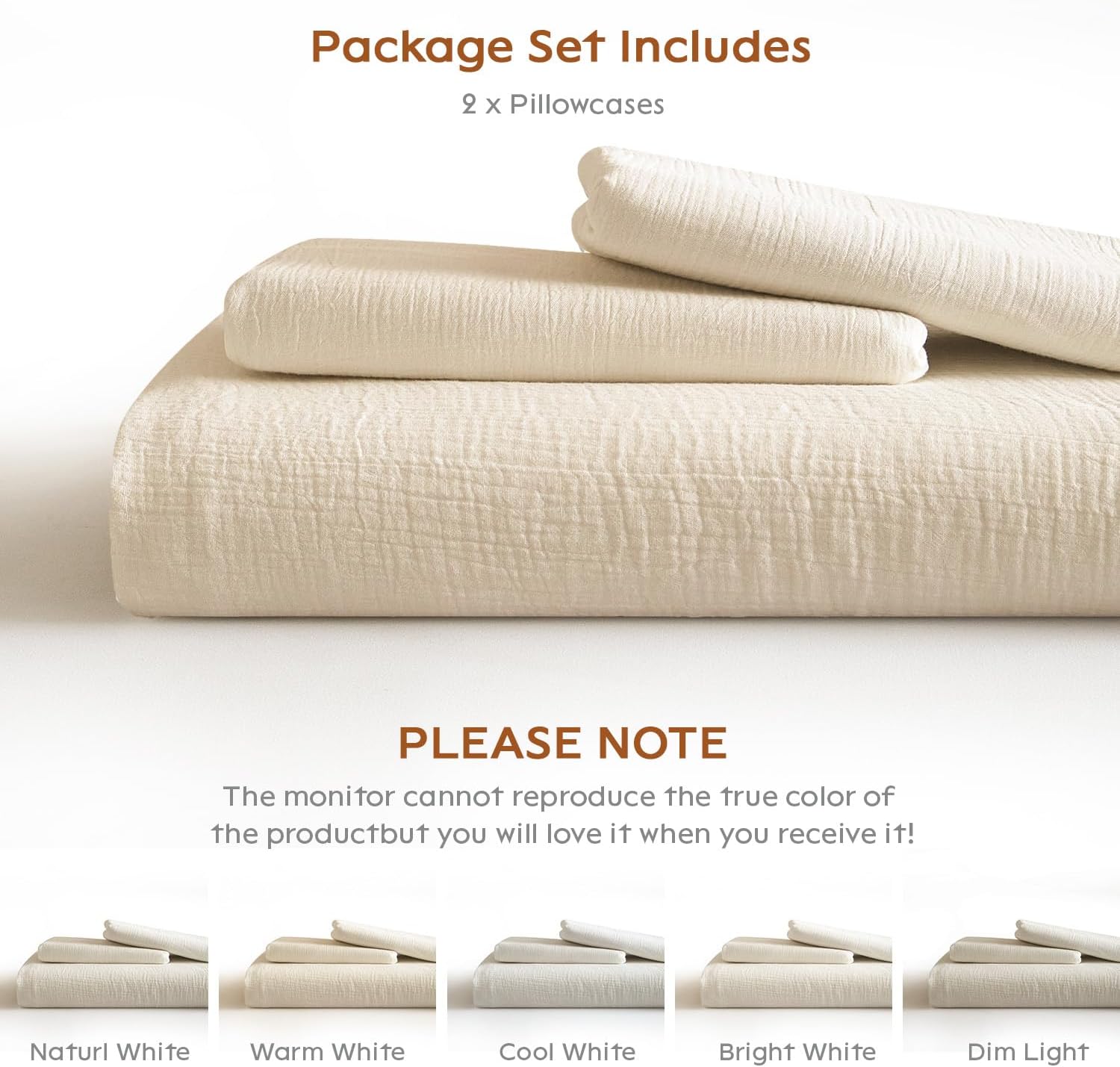 SE SOFTEXLY Muslin Pillowcases Standard Size 100% Cotton, 2 Pack Linen Like Pillow Shams with Envelope Closure, Ultral Soft and Breathable Pillow Case Covers, Off-White, 20" X 26", No Filling