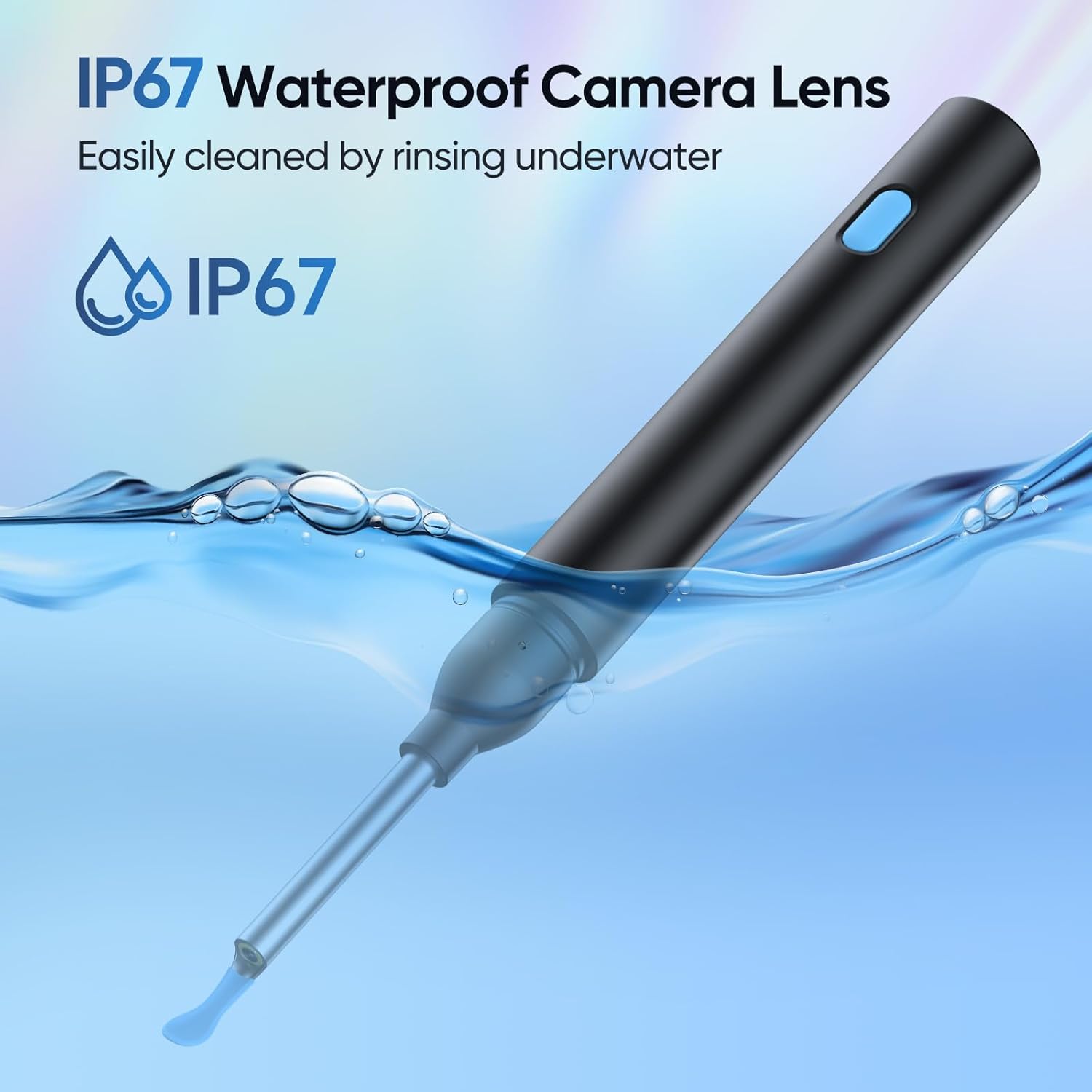 - Easy to Use and Clean - Smart Visual Earpick. Connect easily via WiFi and Bluetooth to the earwax camera. The ear cleaning kit is compatible with both iOS and Android systems, supporting you in seeing real-time images, taking pictures, and recording videos to track your ear health. The IP67 waterproof lens can be washed with water or wiped with alcohol cotton after use; however, please do not immerse the entire otoscope in water