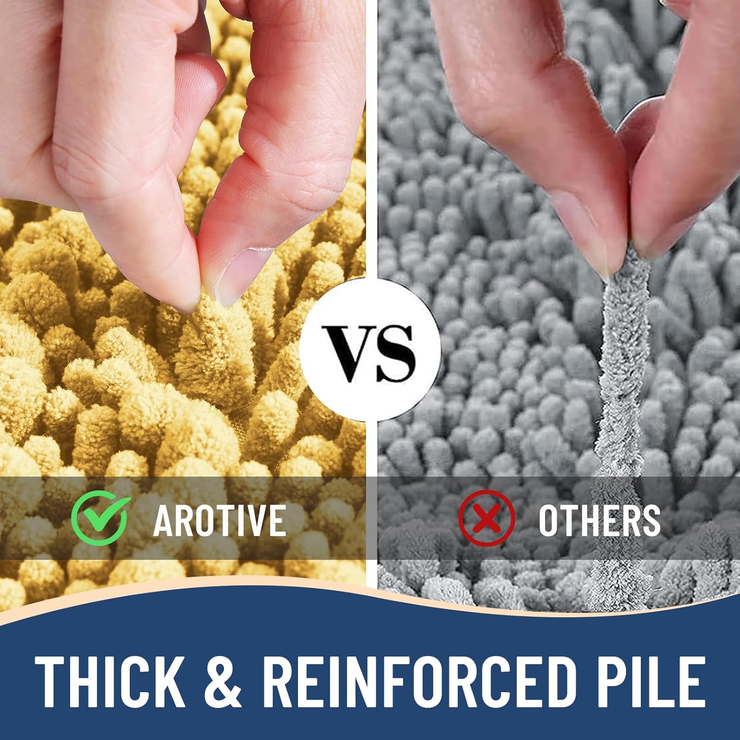 - Anti-Skid Backing: Arotive chenille bathroom rugs feature a non-slip bottom consisting of sturdy mesh PVC material that stops the bath mat from shifting and skidding. The middle layer is 4 mm memory foam, which can let you feel more comfortable when wrapping into the rugs. WARNING: Place bath mat on CLEAN DRY FLAT FLOOR ONLY. Water under bath rug can cause it to slip. Always keep the bottom of bath rug dry