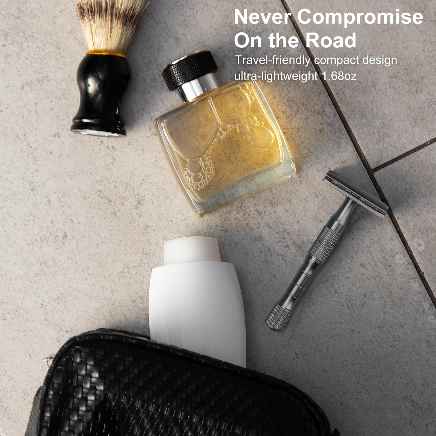 - Perfect for Travel: Our manual safety razor is a travel essential. Its durable and compact design means you can easily take it with you on your trips, ensuring you'll always have a quality shave wherever you go