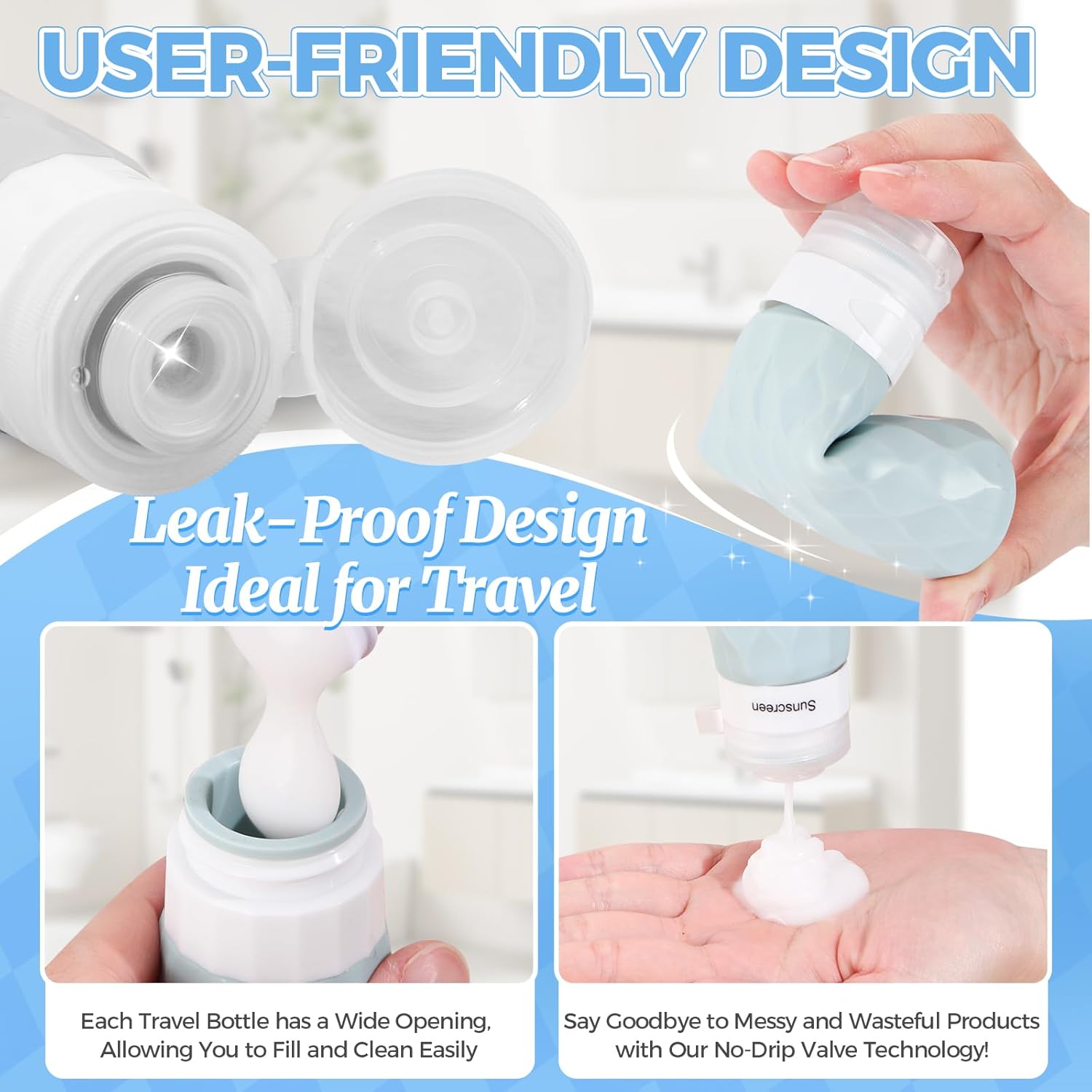 - 【TSA APPROVED】These 16-pack of toiletry travel bottles meet all TSA carry-on baggage standards, allowing you to pass through security smoothly. There is also a clear and sturdy zipper bag, which is perfect for quick airport inspections