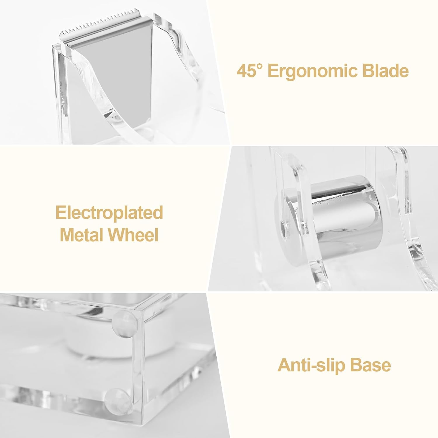 - STYLISH DESIGN:Silver cute tape dispenser crafted from premium 5mm thickened acrylic, it withstands accidental drops while maintaining crystal clarity. A great desk tape dispenser and decor for your desktop.