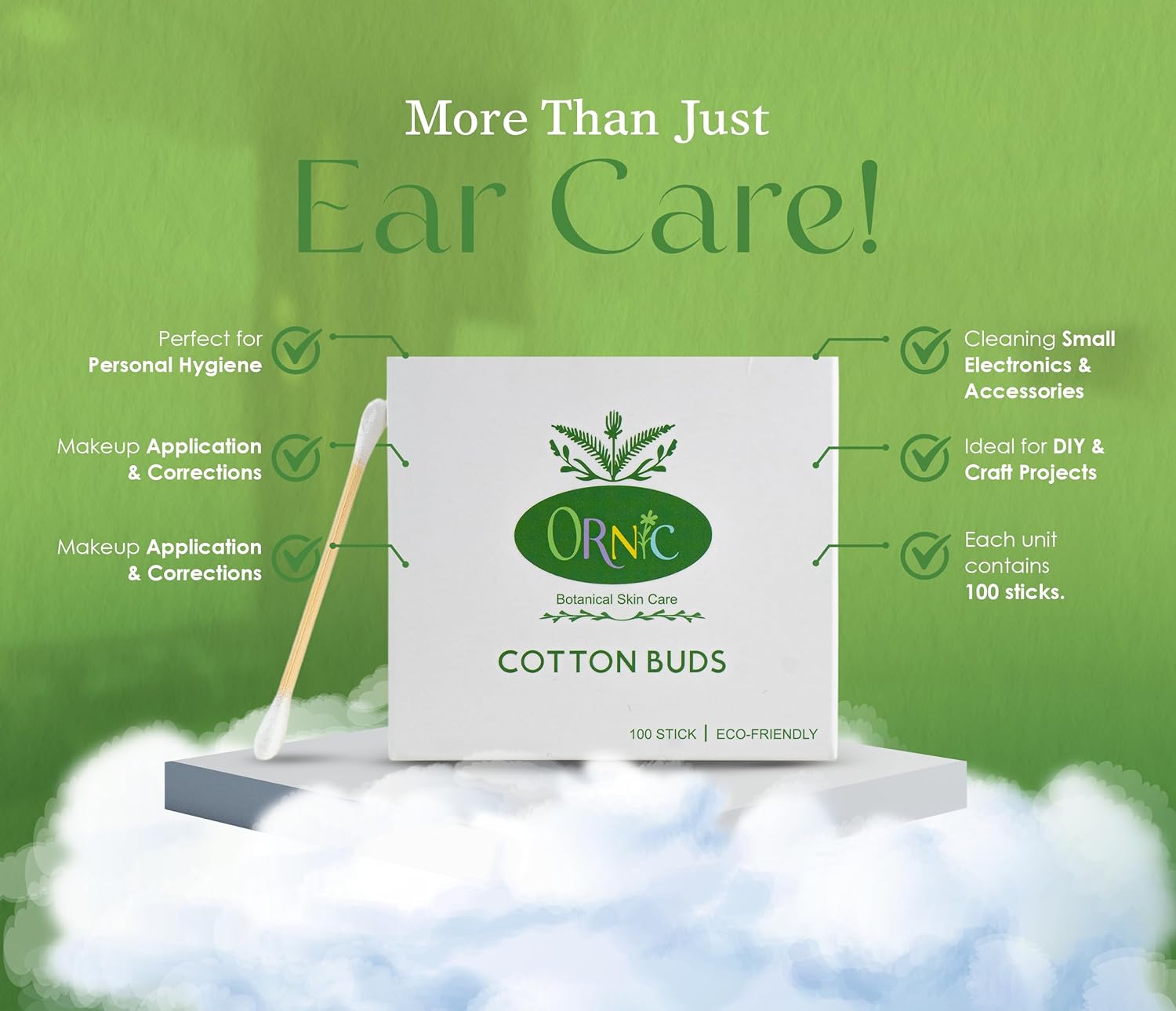 - Versatile for Multiple Uses – Whether you need cotton swabs for makeup, ear hygiene, skincare, or cleaning delicate items, ORNIC eco-friendly bamboo cotton buds offer precision and comfort for all your needs. A must-have in sustainable beauty essentials for zero waste living.
