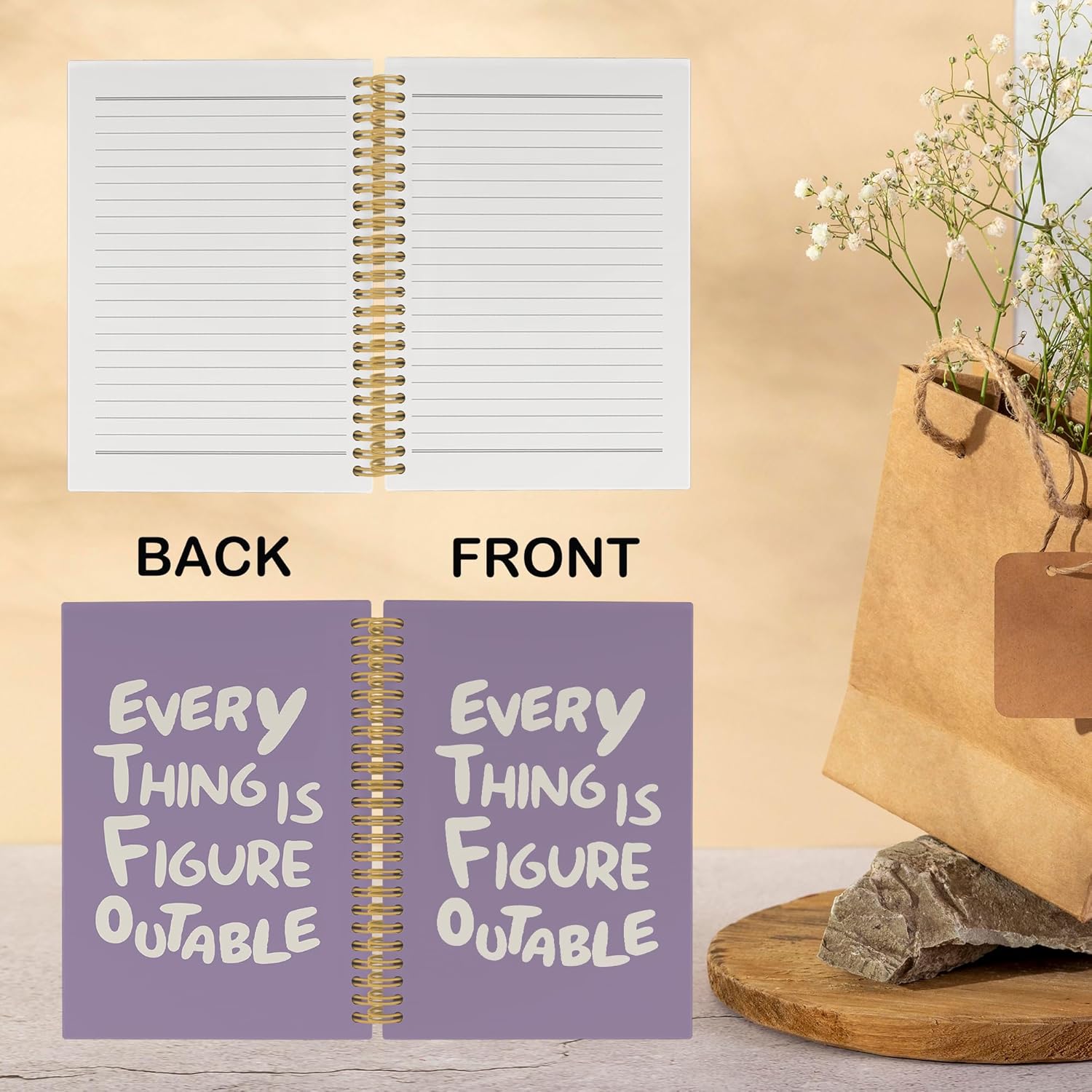 Inspirational Purple Notebook, Positive Affirmations Stress Relief Gifts, Office College Motivational Journal Notebooks, Everything Is Figureoutable Hardcover Spiral Notebook 5.5x8.3 Inch