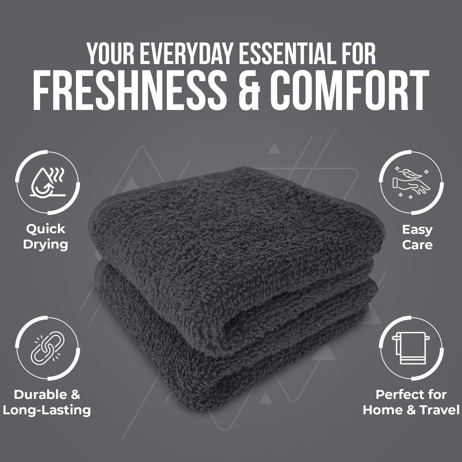 DAN RIVER 100% Cotton Wash Cloths 24 Pack [12x12] Soft & Absorbent wash Rags for Bathroom, Gym, Hotels & Spa Perfect for Everyday Use Fingertip Towels, Dark Gray
