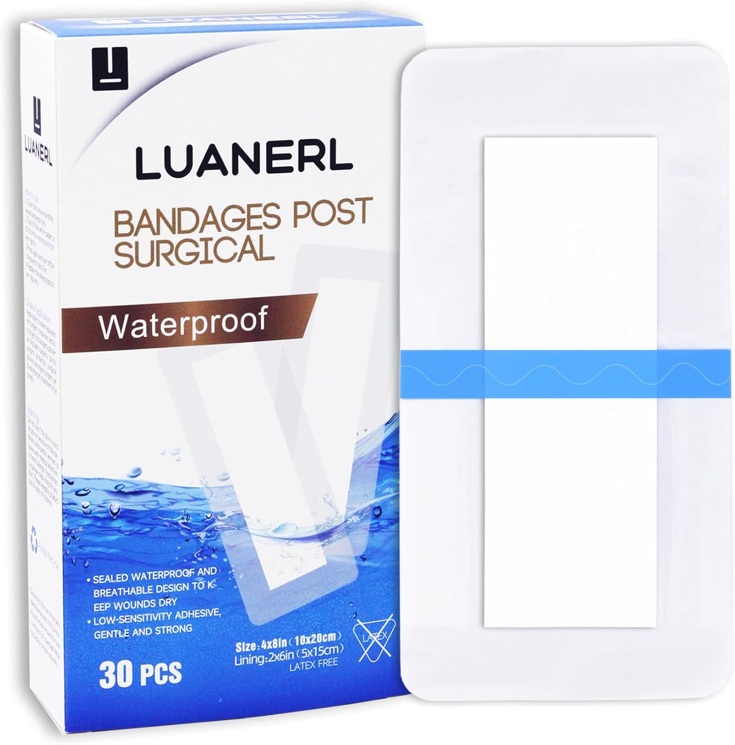 - Sustained Thirty Pack Set, Easy to Use: 30 pieces can be continuously protected for a 4-week recovery period, Easy to apply and easy to remove after showering. Changing the dressing is much easier, no more bulky gauze wraps or tapes. This island bandage is as simple as putting on a bandage.