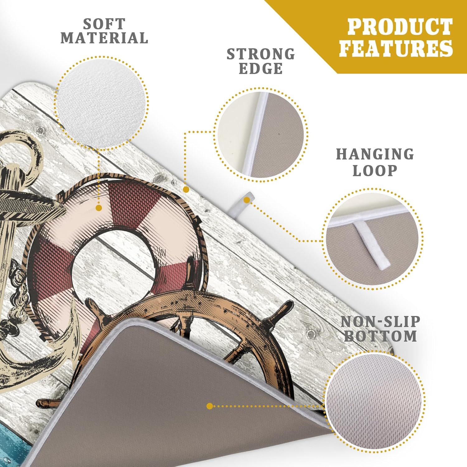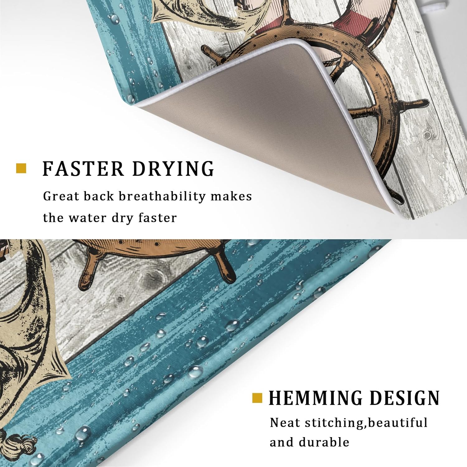 - 【Easy to Storage】This nautical rudder design drying mat with hang rope, soft and foldable, durable, easy to storage it by hanging or folding it up in a drawer or tuck it elsewhere. Perfect for tight spaces like campers, boats and cottages where having a dual purpose item will come in handy.