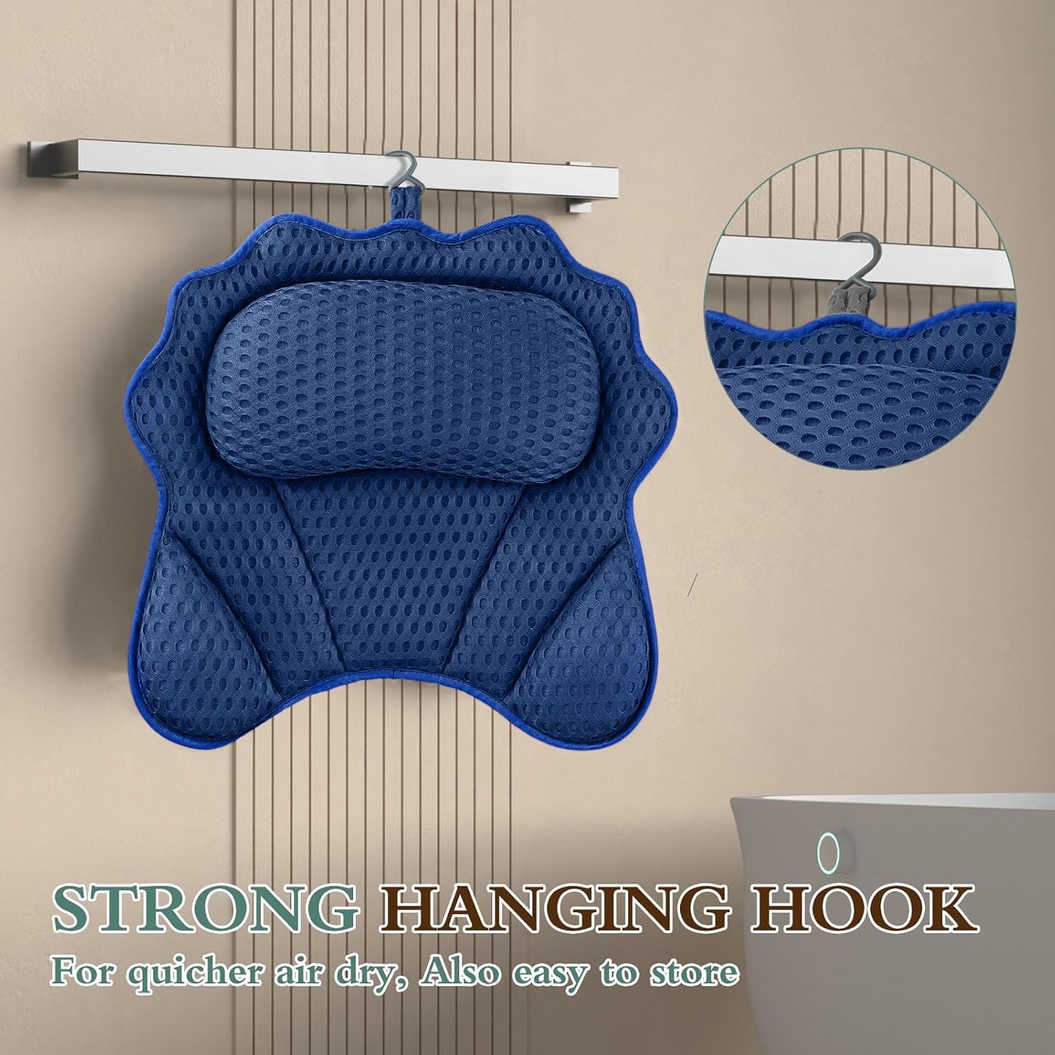 Bath Pillow RUVINCE Ergonomic Luxury Bathtub Pillow with Head,Neck, Shoulder and Back Support, 4D Bath Pillows for tub with 6 Powerful Suction Cups, Fits All Bathtub, Spa Tub, Hot Jacuzzi (Dark Blue)