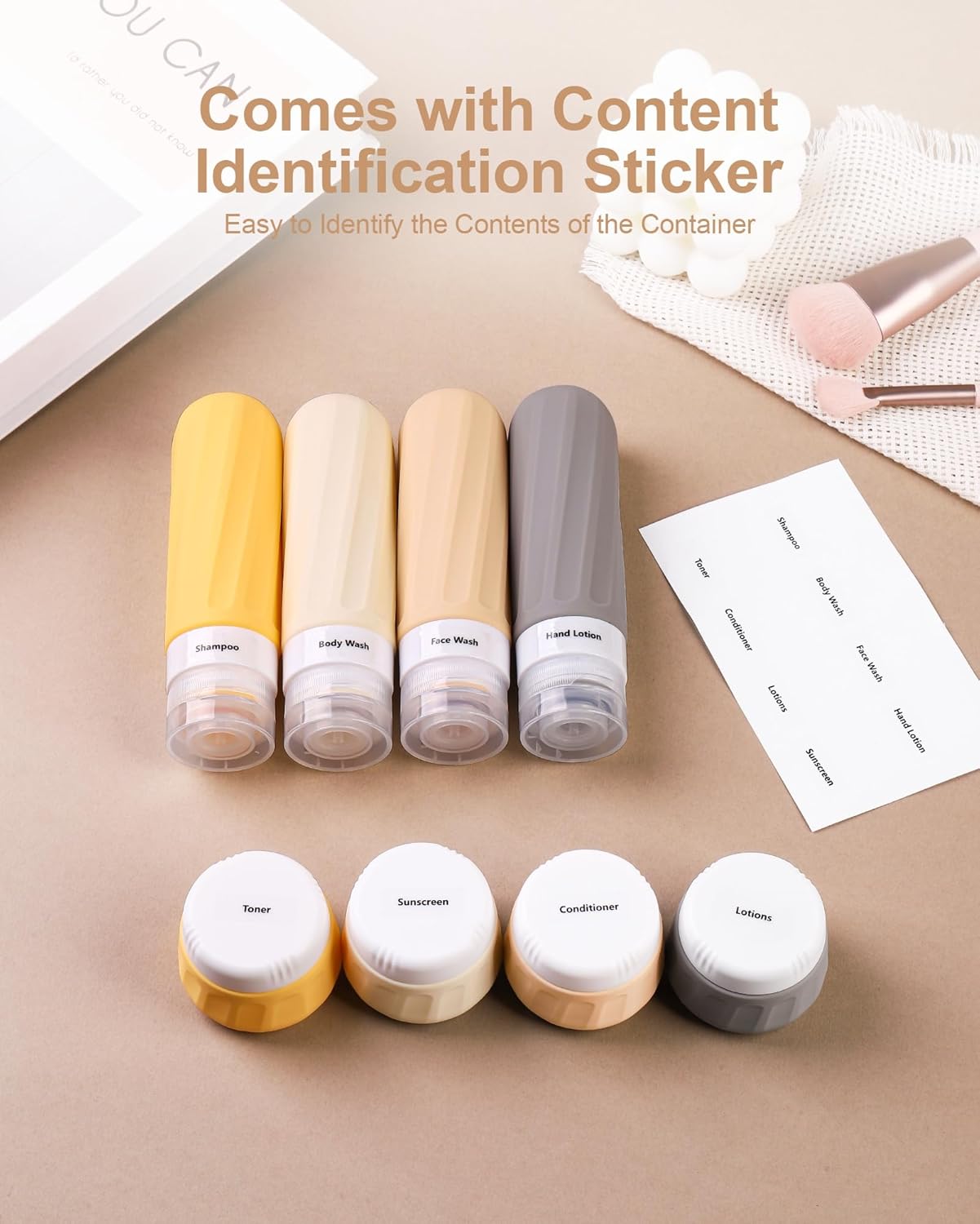 Travel Bottles for Toiletries 8 Pack, Travel Size Toiletries, Tsa Approved Travel Size Containers 3oz, with Travel Essentials Clear Bag, Leak Proof Silicone Squeezable Creams Jars