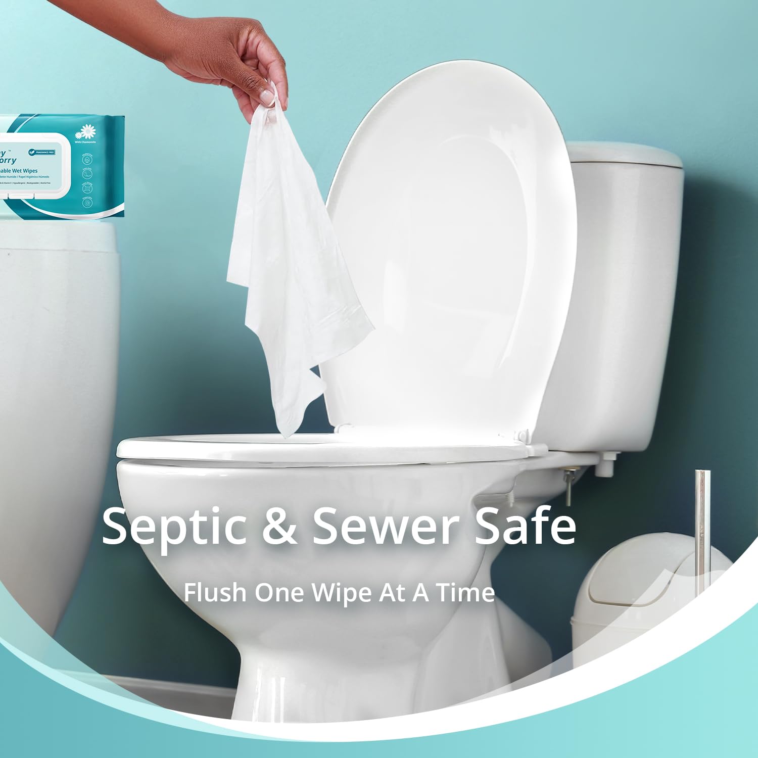 - GENTLE FORMULA FOR ALL SKIN: Made with 99% pure water and enriched with Chamomile and Vitamin E, Why Worry flushable wipes are plastic-free, latex-free, alcohol-free and pH-balanced. These plant-based and hypoallergenic wipes are safe for all skin types, making them not only perfect for bathroom use but also ideal for daily body cleansing and hygiene purposes.