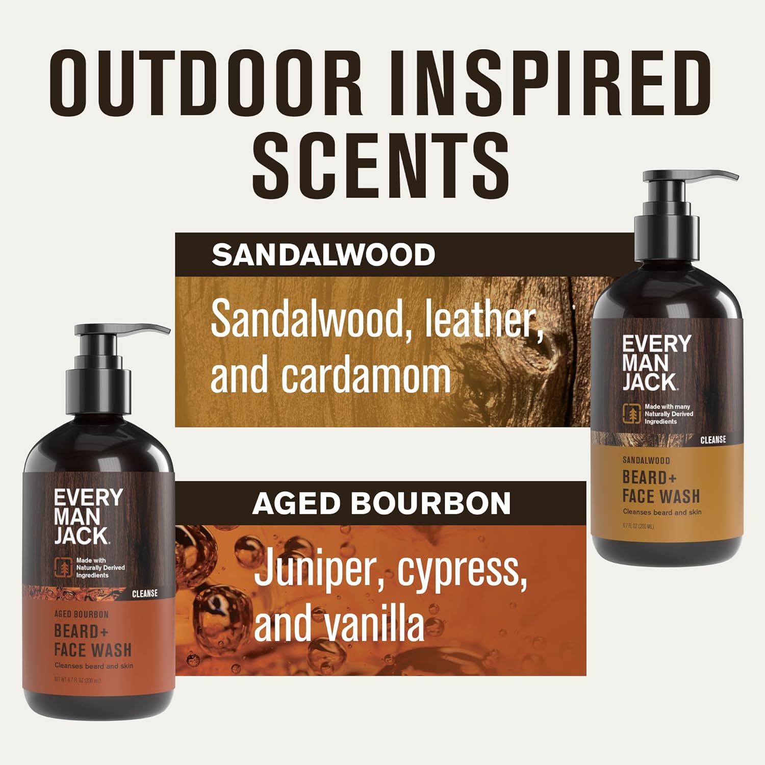 Every Man Jack Beard + Face Wash - Sandalwood & Aged Bourbon Bundle - Cleans & Softens Your Beard and Skin - Naturally Derived w/Aloe and Glycerin- 6.7 fl oz - 2 Pack
