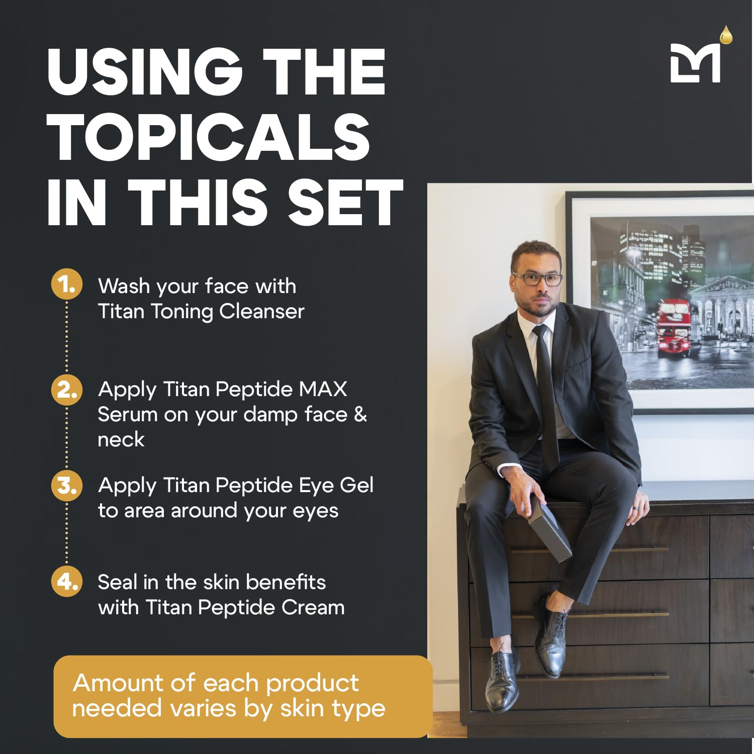 • What Gave Those Actors That Ageless Look: This anti-aging men's skincare set features the Titan Toning Cleanser, Titan Peptide MAX Serum, Titan Peptide Eye Gel, and Titan Peptide Cream; It's the skin care for men behind those 2025 Oscars close-ups
