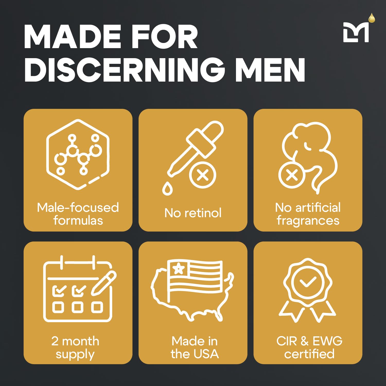 • Higher Standards in Men's Facial Skin Care: All of our men's face care kit formulas are engineered and made right here in the USA; We made sure all our men's facial skin care sets & kits ingredients pass the highest safety standards from both CIR and EWG – the top authorities in skincare safety