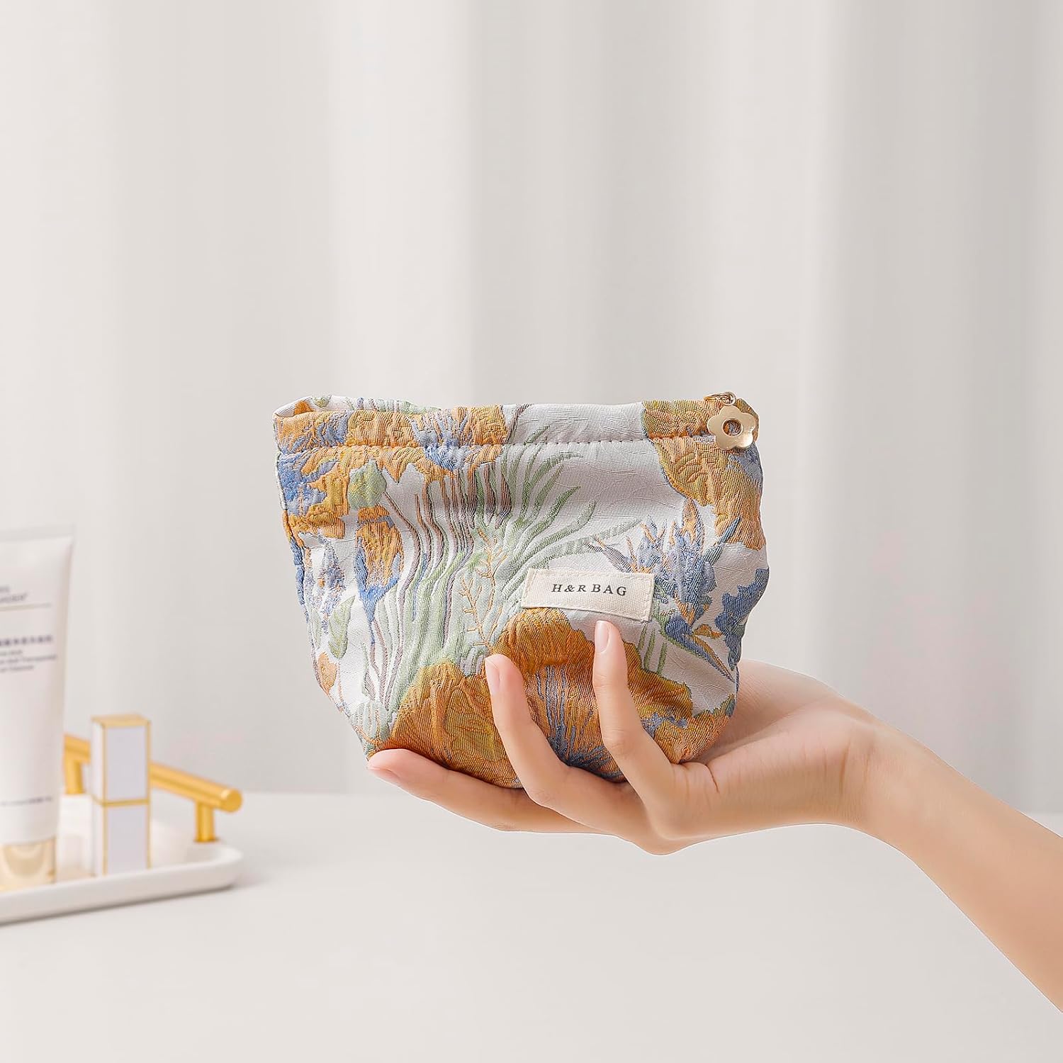 - Floral Pouch Pattern Small Cosmetic Bag for Purse: The large pouches for purse feature a beautiful floral print, adding a touch of style to your makeup routine. Make you feel happy everyday.