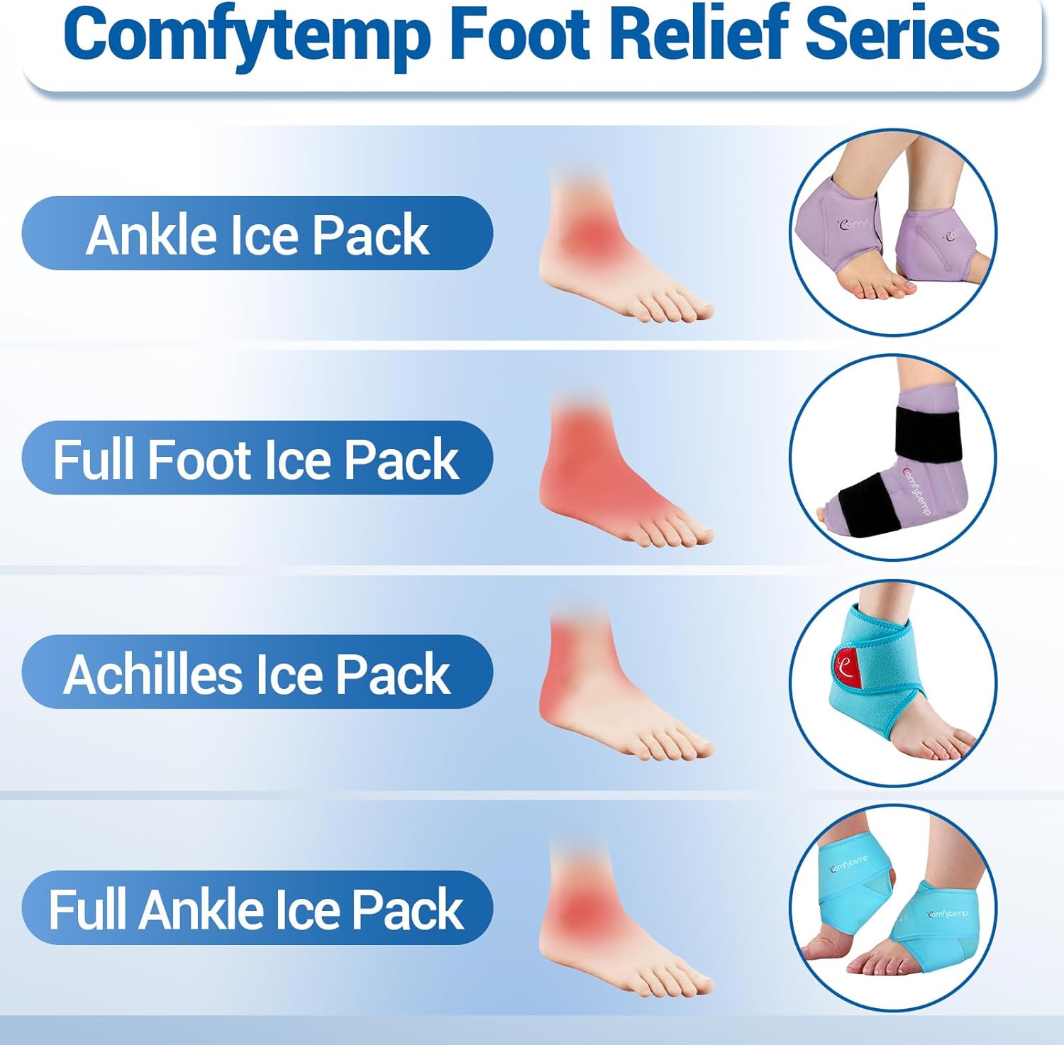 Comfytemp Large Ankle Foot Ice Pack Wrap for Plantar Fasciitis Relief, Feet Brace for Sprained Ankle, Heel Spur, Swelling, Tendonitis, Pain, Hot & Cold Therapy, Surgery Get Well Gift, 1 Pack (Purple)