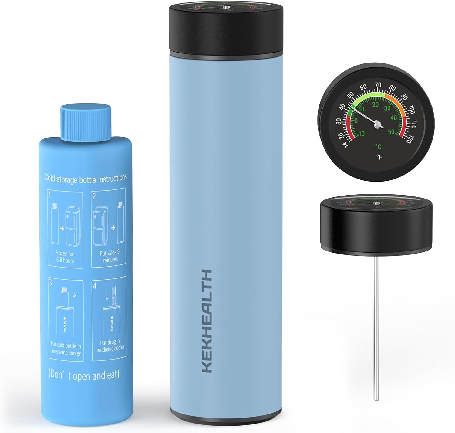 - 60-Hour Medical-Grade Protection: This insulin cooler uses 304 stainless steel and vacuum insulation to maintain critical 36-79°F temperatures for diabetes medications. The combination of a blue gel bottle (36-79°F/48H) and a white emergency bottle (36-79°F/12H) keeps medications at a safe temperature for up to 60 hours
