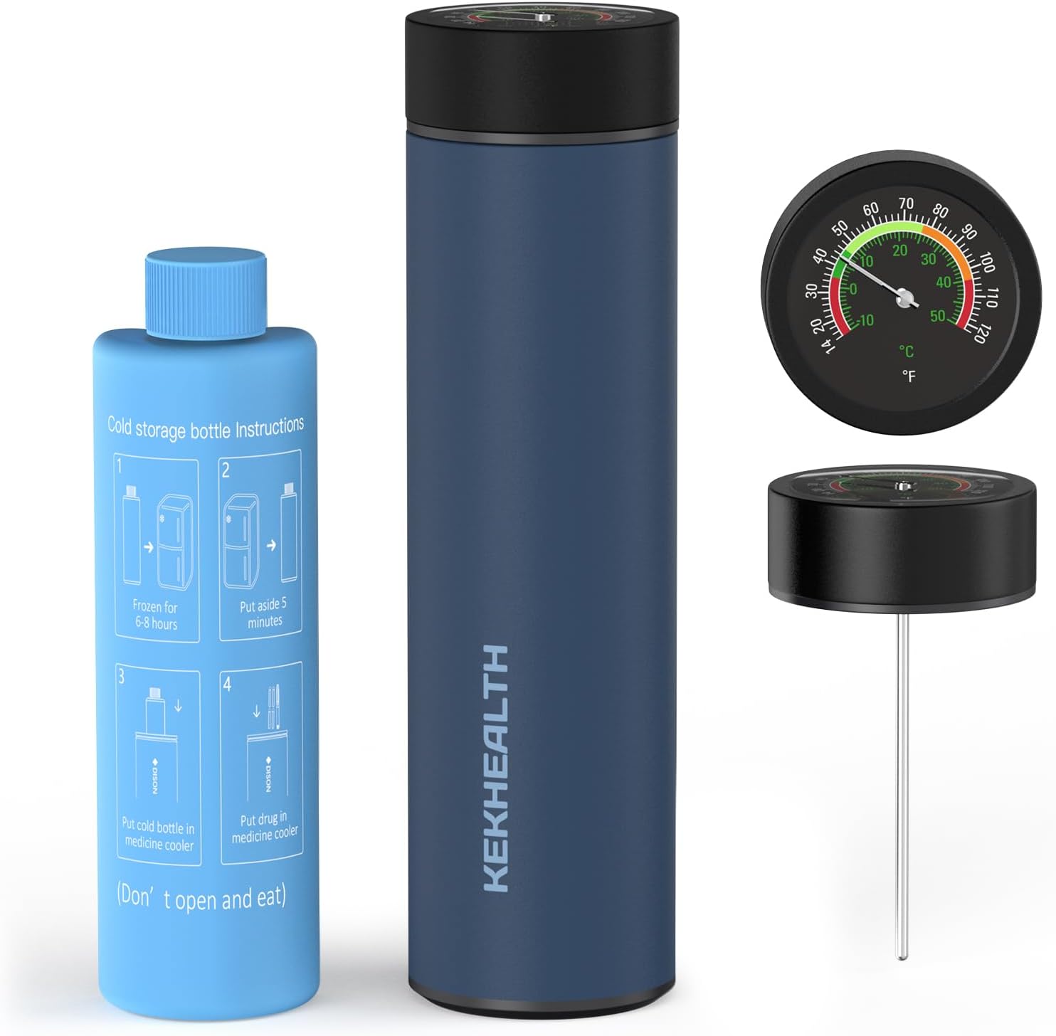 - 60-Hour Medical-Grade Protection: This insulin cooler uses 304 stainless steel and vacuum insulation to maintain critical 36-79°F temperatures for diabetes medications. The combination of a blue gel bottle (36-79°F/48H) and a white emergency bottle (36-79°F/12H) keeps medications at a safe temperature for up to 60 hours