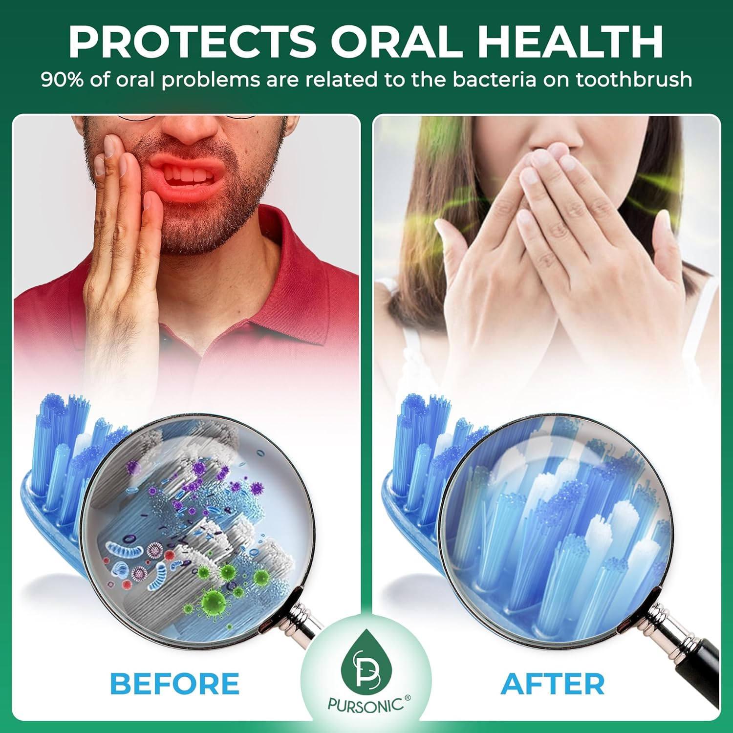 - Rapid Cleaning with UV Toothbrush Case & Magnetic Mounting: Experience enhanced freshness with UV light that helps keep your toothbrush in clean condition. Designed for convenience, this case includes a magnetic mount for secure, accessible placement in your bathroom or travel bag.