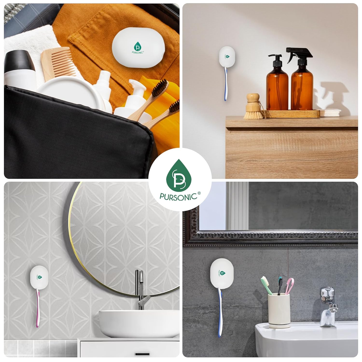 Pursonic Portable UV Toothbrush Sanitizer Case – Rechargeable Toothbrush Cleaner with UV Light & Magnetic Mounting – Compact, Hygienic & Long-Lasting (30-Day Battery) for Home & Travel (White)