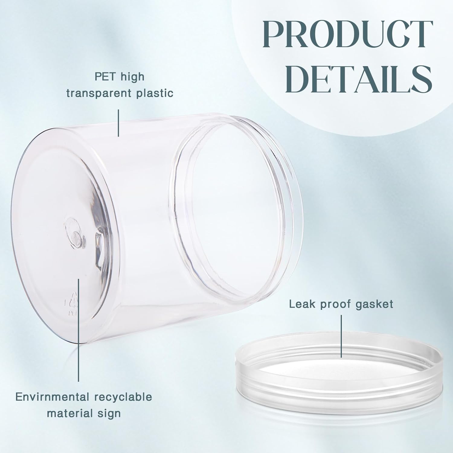 • What You Receive: there are 4 pieces plastic jars with clear screw-on lids; They are durable and refillable, measuring about 16 oz in capacity