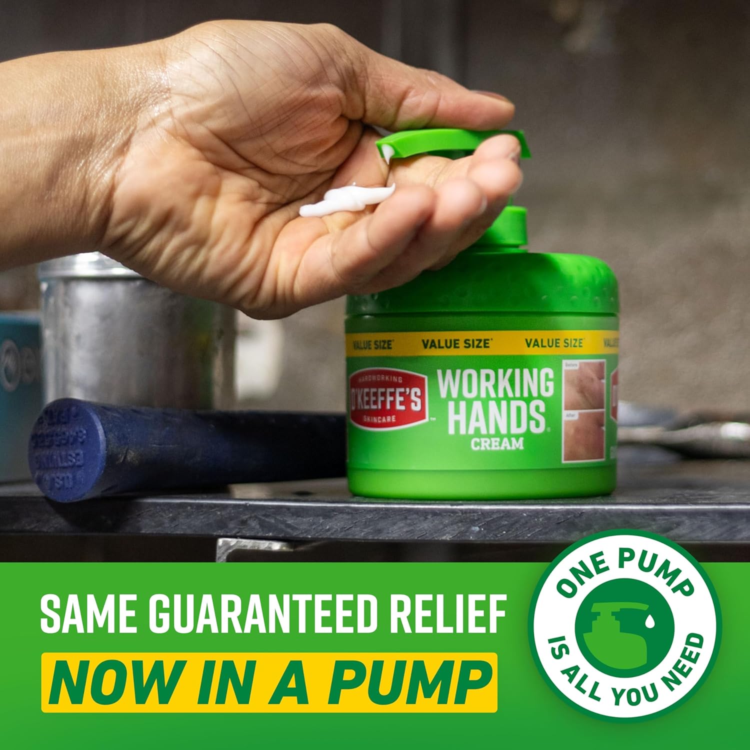 O'Keeffe's Working Hands Hand Cream in a Pumpable Jar for Extreme Dryness – 10oz Pump (1 Pack) - Repairing Skincare for Cracked, Dry Hands