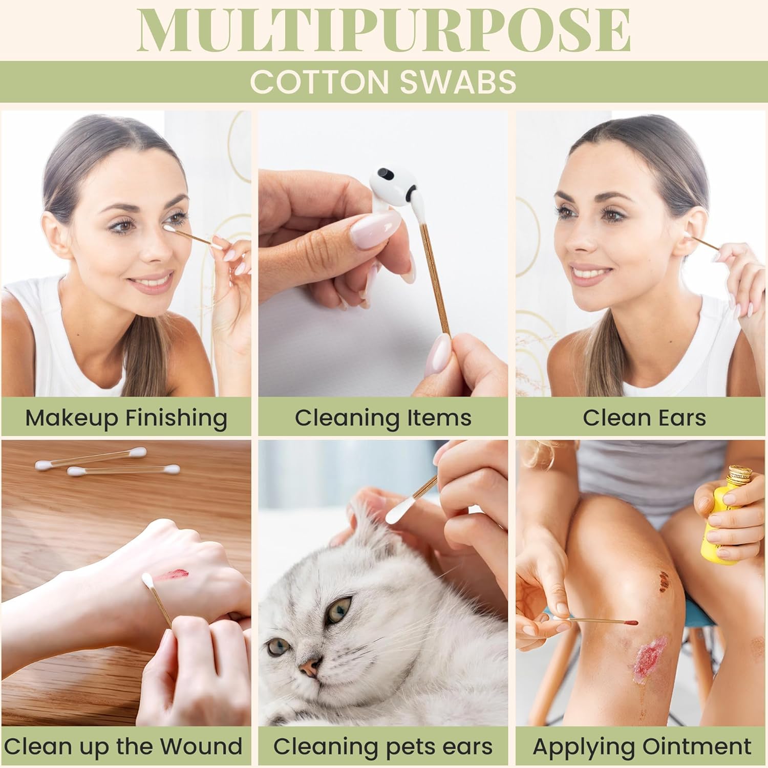 - YOU GET VERSATILE SWABS for EVERY NEED! These larger-than-usual bamboo cotton swabs are designed for more than just ear care! Their size and sturdy construction make them perfect for applying makeup, cleaning hard-to-reach spots, handling delicate items, arts & crafts, and so much more. Conveniently packaged in a beautiful, eco-friendly Kraft paper box, they’re travel-friendly and a must-have for any household. You get the perfect blend of functionality and sustainability with every use!