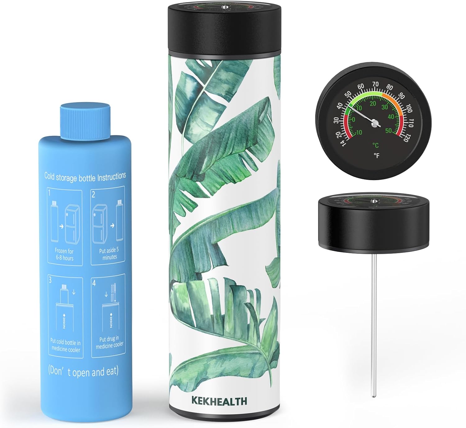 - 60-Hour Medical-Grade Protection: This insulin cooler uses 304 stainless steel and vacuum insulation to maintain critical 36-79°F temperatures for diabetes medications. The combination of a blue gel bottle (36-79°F/48H) and a white emergency bottle (36-79°F/12H) keeps medications at a safe temperature for up to 60 hours