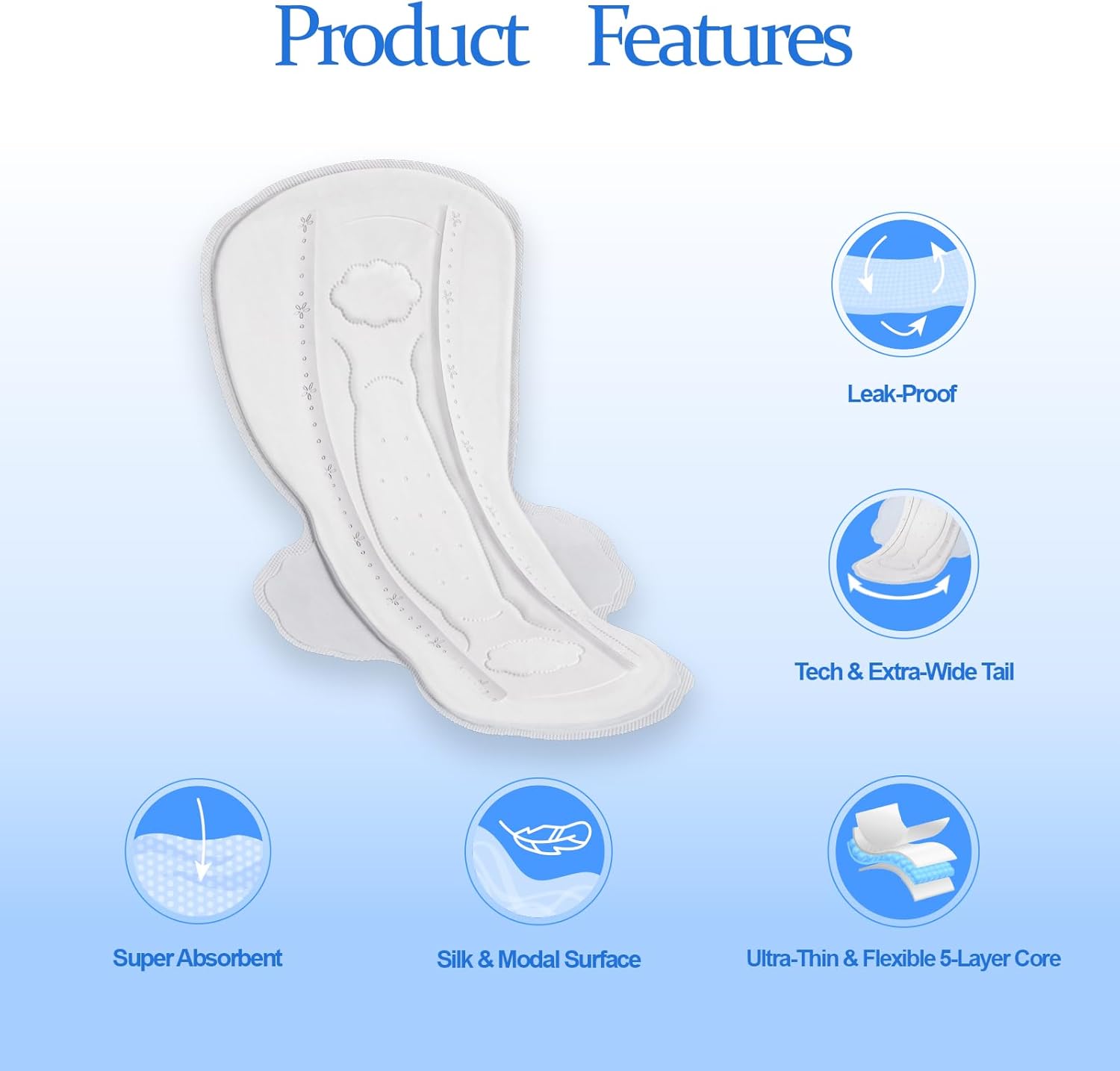 - Move Freely, No Leaks, No Embarrassment:Modal Ultra Thin Pads with Wings feature an advanced five-layer composite core (non-woven fabric, fluff pulp, and SAP) designed for rapid absorption, keeping you dry, fresh, and confident all day long. The secure wings provide a snug fit to ensure the pad stays firmly in place, effectively preventing leaks. Whether you're at work, running errands, or constantly on the go, enjoy unmatched comfort and leak-free protection