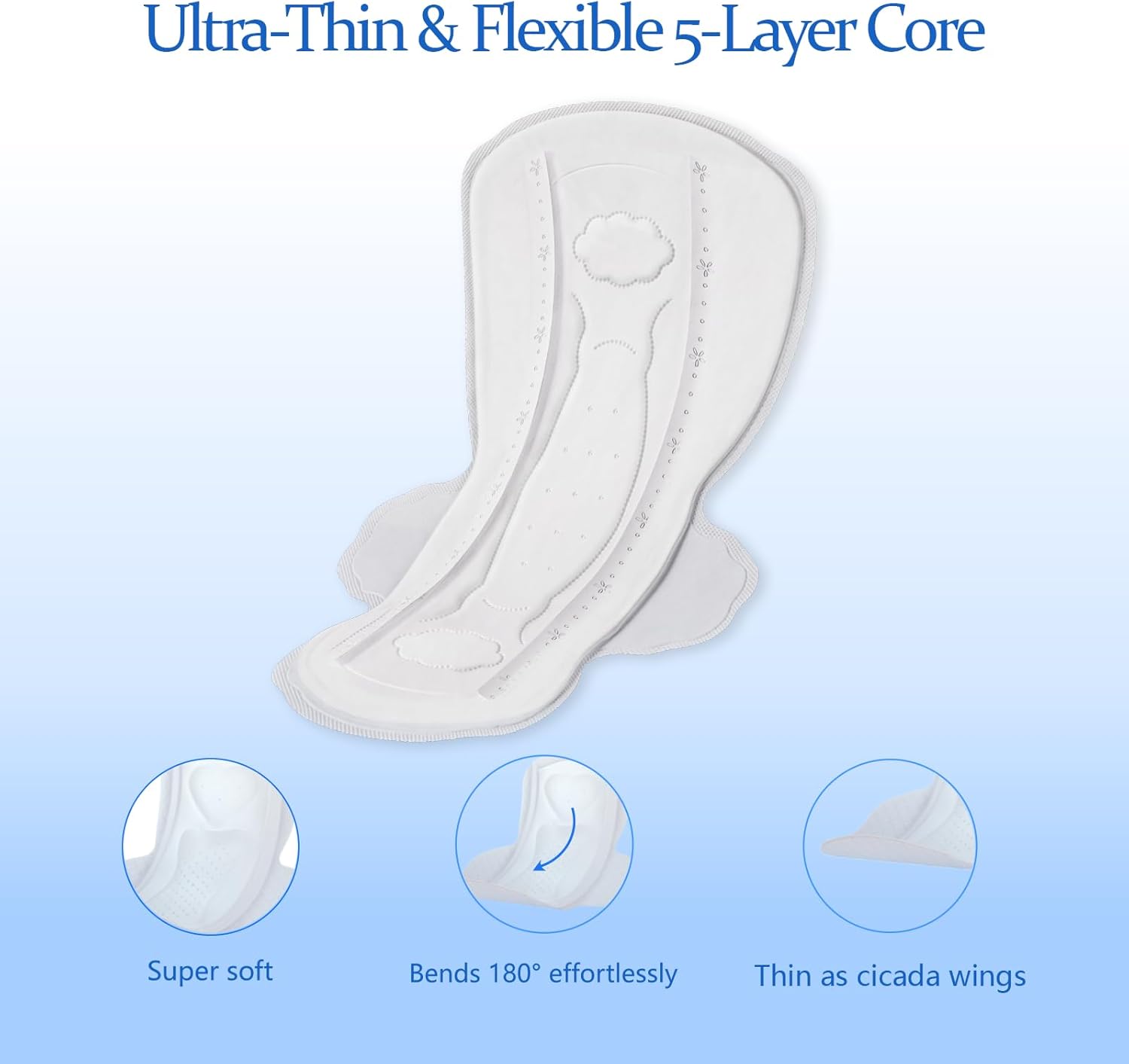 - Move Freely, No Leaks, No Embarrassment:Modal Ultra Thin Pads with Wings feature an advanced five-layer composite core (non-woven fabric, fluff pulp, and SAP) designed for rapid absorption, keeping you dry, fresh, and confident all day long. The secure wings provide a snug fit to ensure the pad stays firmly in place, effectively preventing leaks. Whether you're at work, running errands, or constantly on the go, enjoy unmatched comfort and leak-free protection.