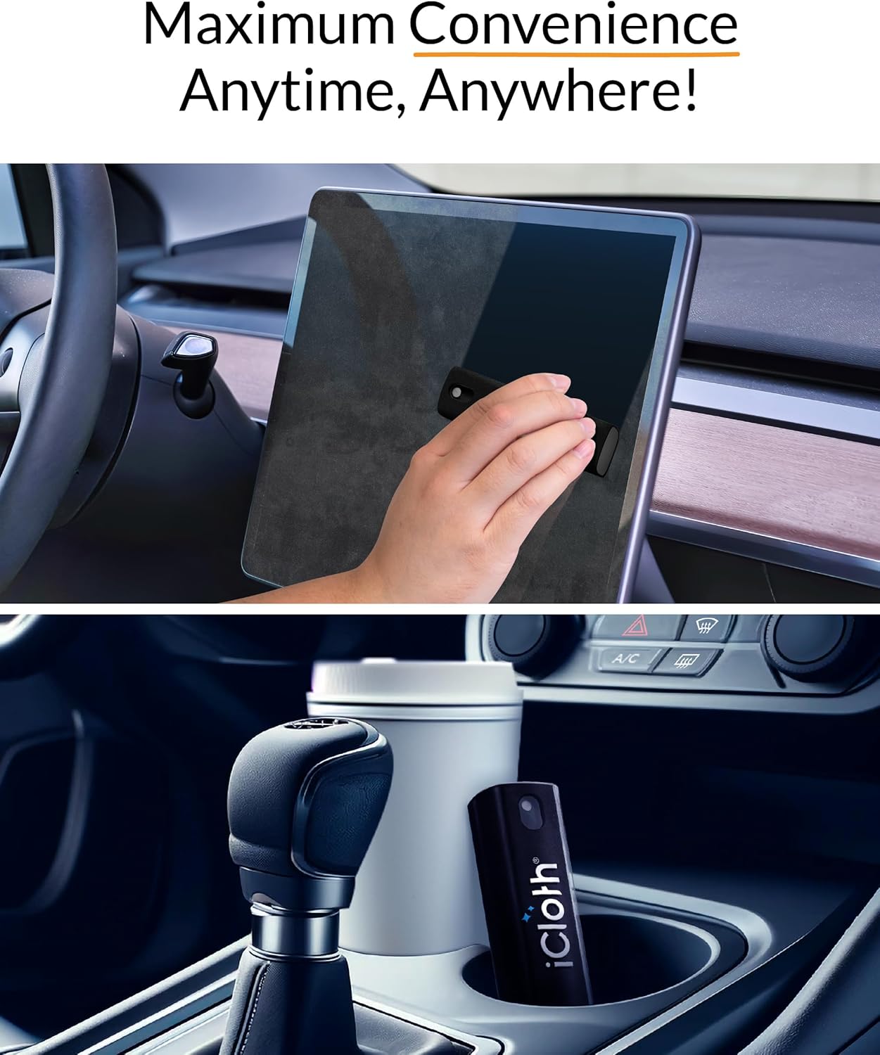 iCloth 2-in-1 Screen Cleaner Spray & Microfiber Cloth for Laptops, Tablets, Phones, Car Screens & Touchscreens, Streak-Free & Anti-Smudge, Large 0.68 fl oz (20ml) Bottle for Extended Use