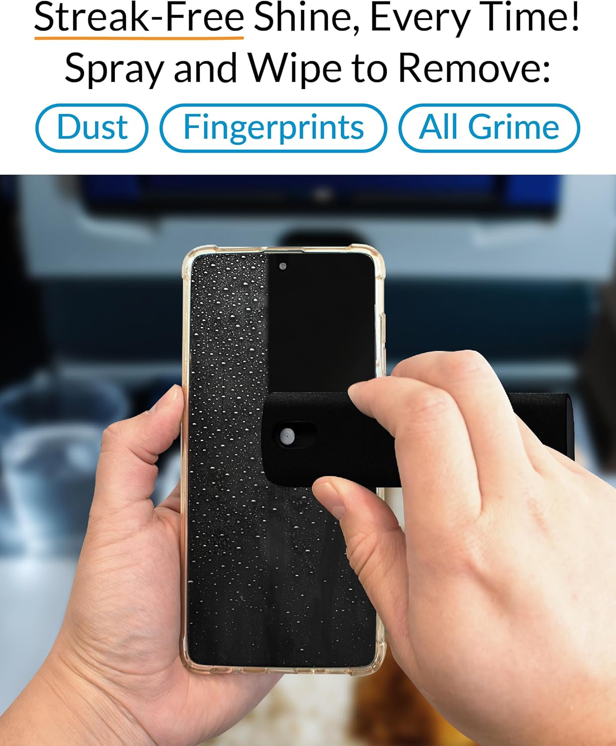 - STREAK-FREE & SMUDGE-RESISTANT β Our fine mist spray effortlessly removes dust, fingerprints, and oily smudges without leaving streaks, keeping your screens spotless and looking like new. Perfect for phones, tablets, laptops, monitors, and car screens.