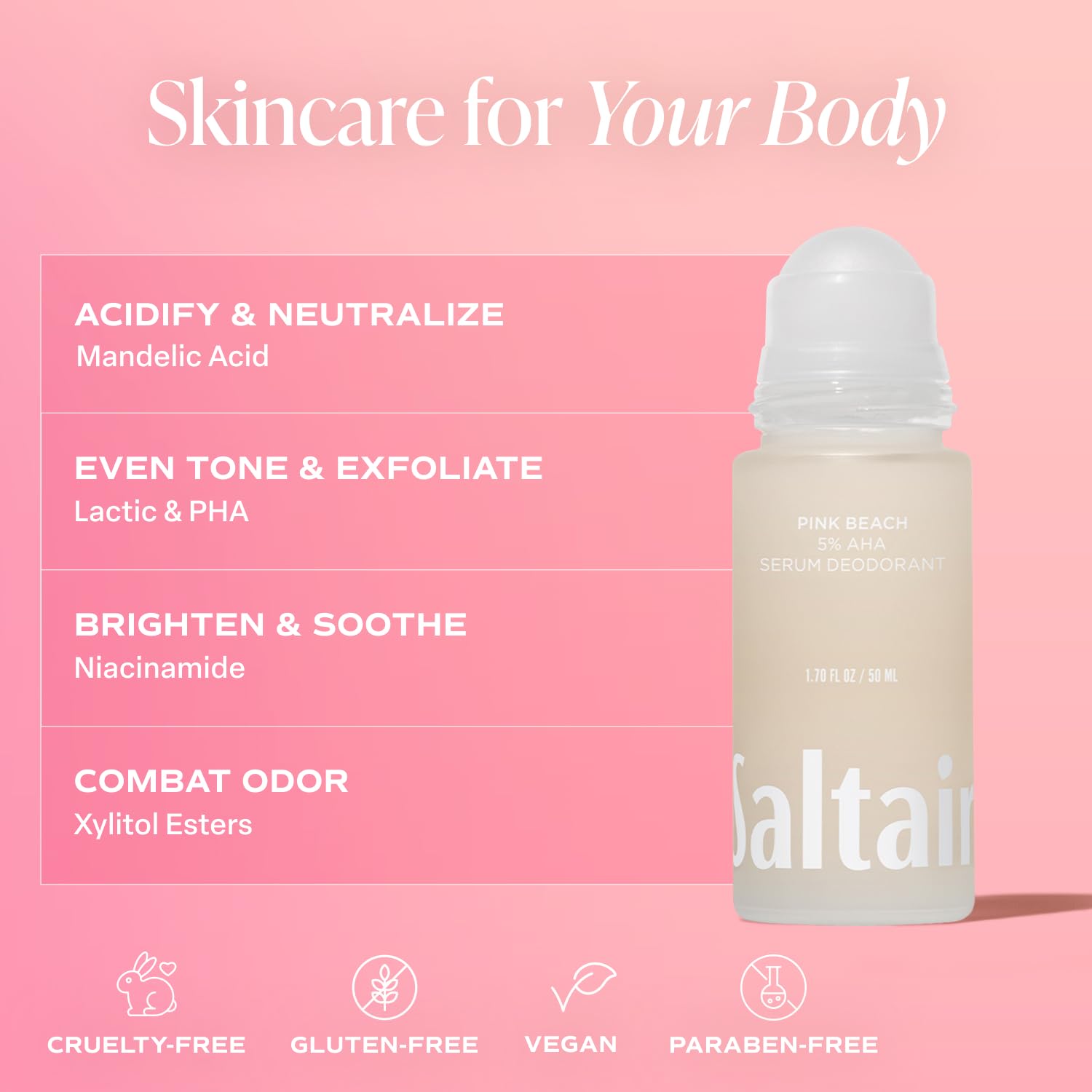 - GOOD FOR SKIN: This two pack roll-on is 1.7floz each, making it the perfect travel deodorant. Aluminum-free, cruelty-free, gluten-free, vegan, and paraben-free. Everything we create is made with a body-positive vibe. Saltair - Body Care is Skin Care. Every Body is Welcome Here