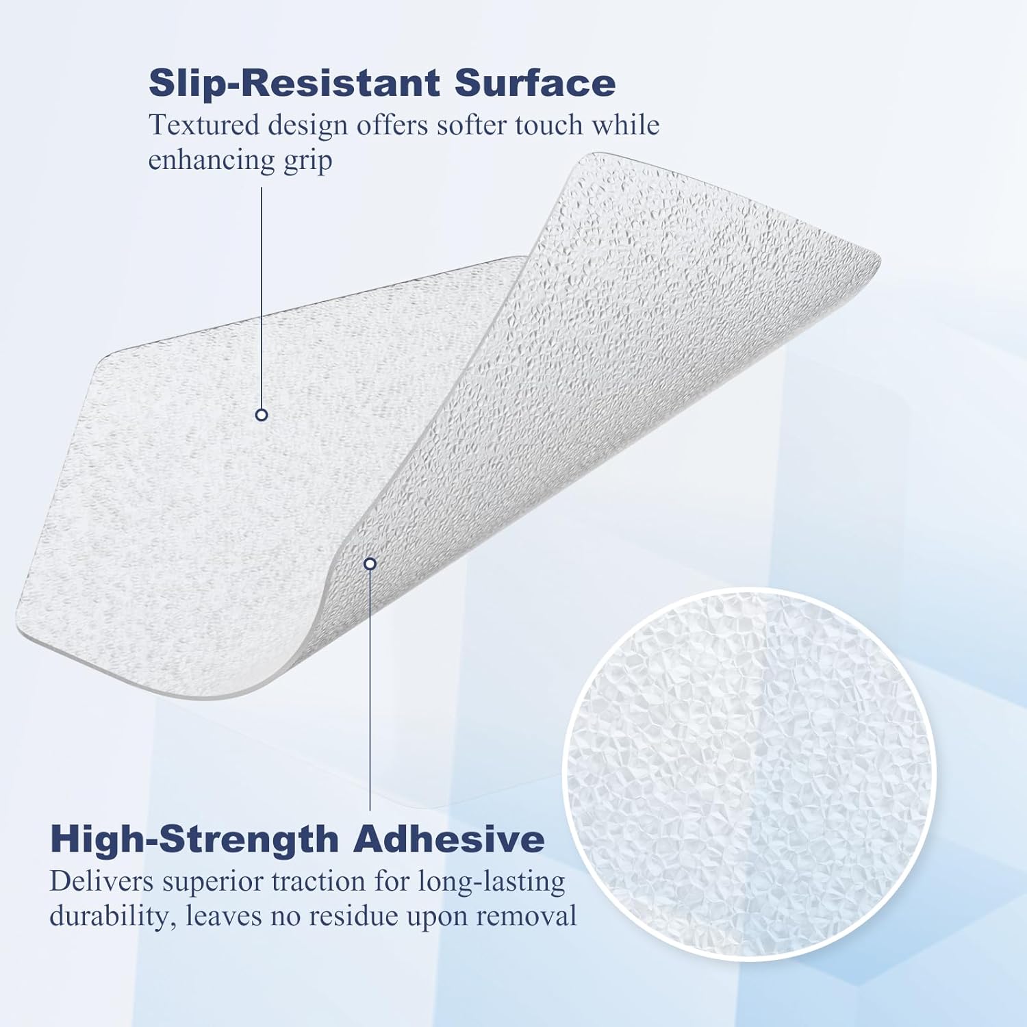 - Upgraded Gentle Material: Shower grips non slip stickers use skin-friendly surface with subtle texture for strong anti-slip traction. Suitable for all ages, perfect for bathrooms, stairs, pools, and other slippery surfaces, guards family day/night