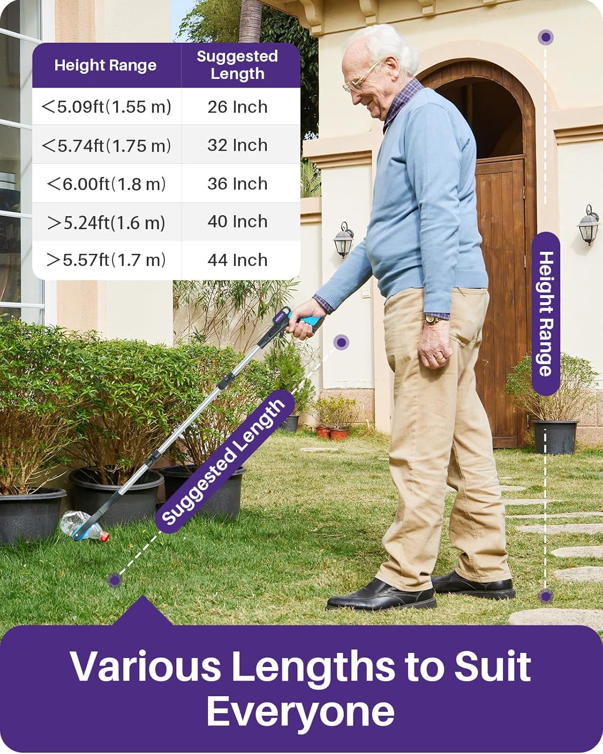 - 40” Foldable Design for Multi-Scene Reach: Reach further, store smarter! At 40 inches, this trash grabber tool tackles attic boxes, deep closets, or outdoor trash—then folds flat for car trunks or tight pantries. Reinforced hinges survive rugged use, unlike fragile folding competitors. Hunters and parents rave: ‘It’s the picker upper grabber for elderly-friendly length without the weak joints!