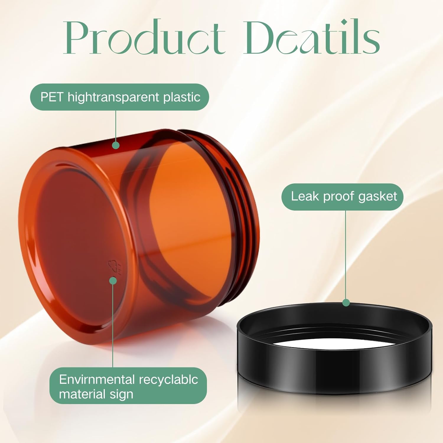 SATINIOR 12 Pack 6 oz Plastic Container Jars with Lids Round Clear Travel Cosmetic Container Slime Jars for Toiletries, Lotion, Cream, Ointments, Makeup, Rhinestone, Samples, Kitchen Storage(Amber)