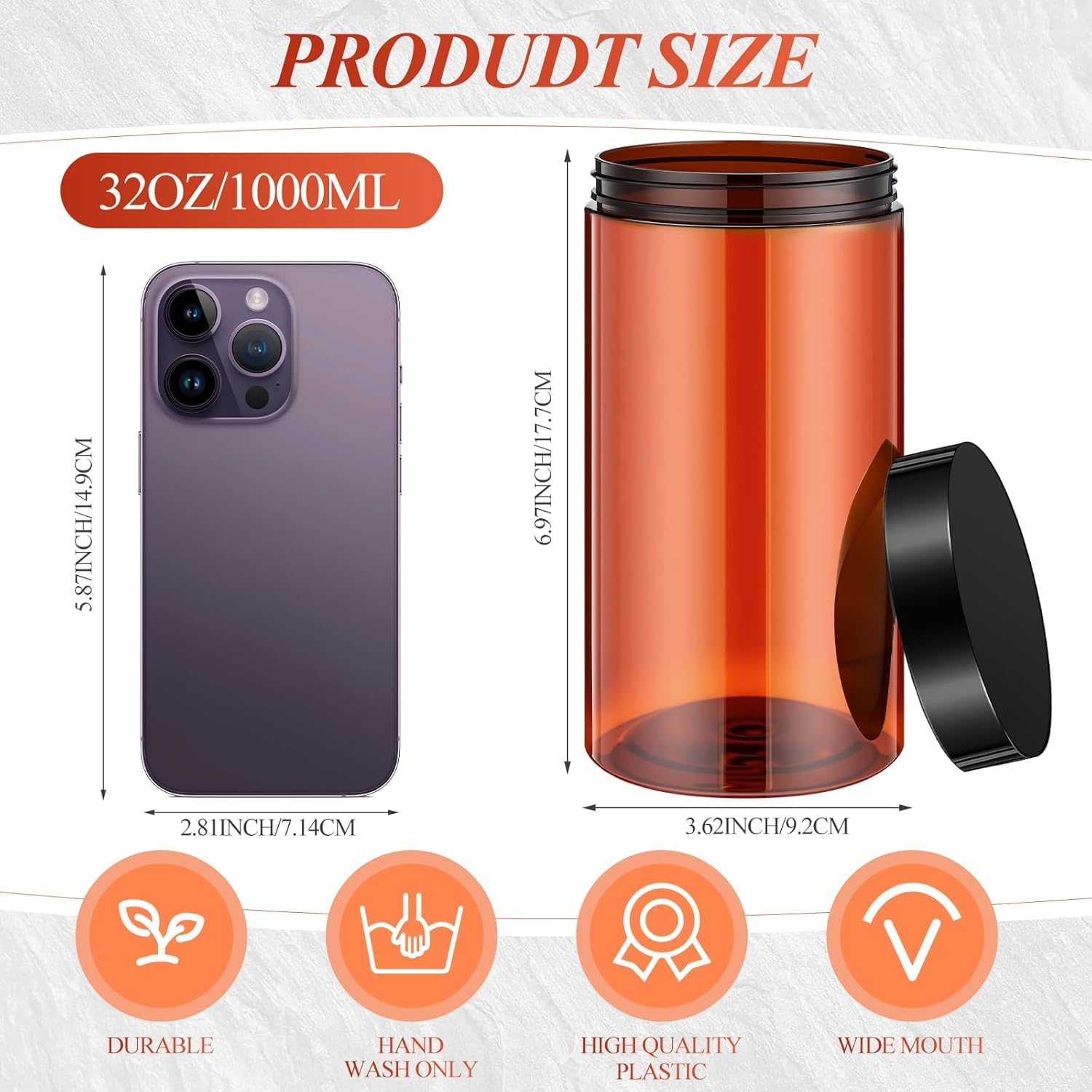- Easy to Use: the plastic jars are straight sided and round with thick walls; They are reliable and resistant to impact