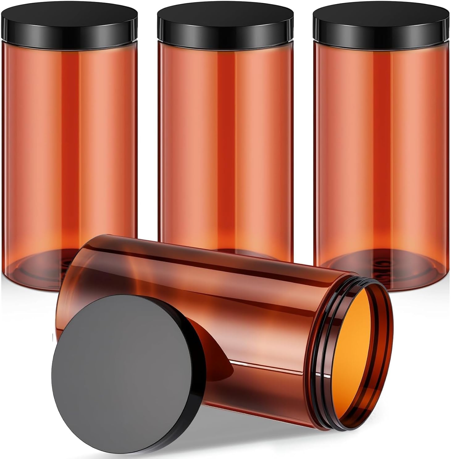 SATINIOR 12 Pack Plastic Container Jars with Lids Round Clear Travel Cosmetic Container Jars for Toiletries, Lotion, Cream, Ointments, Makeup, Rhinestone, Samples, Kitchen Storage(32 oz,Amber)