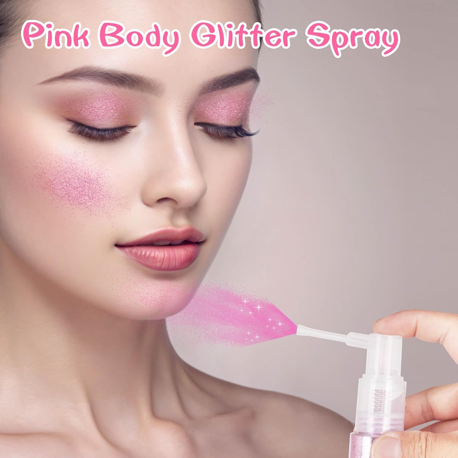 MEICOLY Pink Hair and Body Glitter Spray,25g/0.88OZ,Shinny Sparkle Glitter Spray for Clothes,Loose Shimmer Hairspray for Festival Rave Makeup/Stage Performance,Lightweight