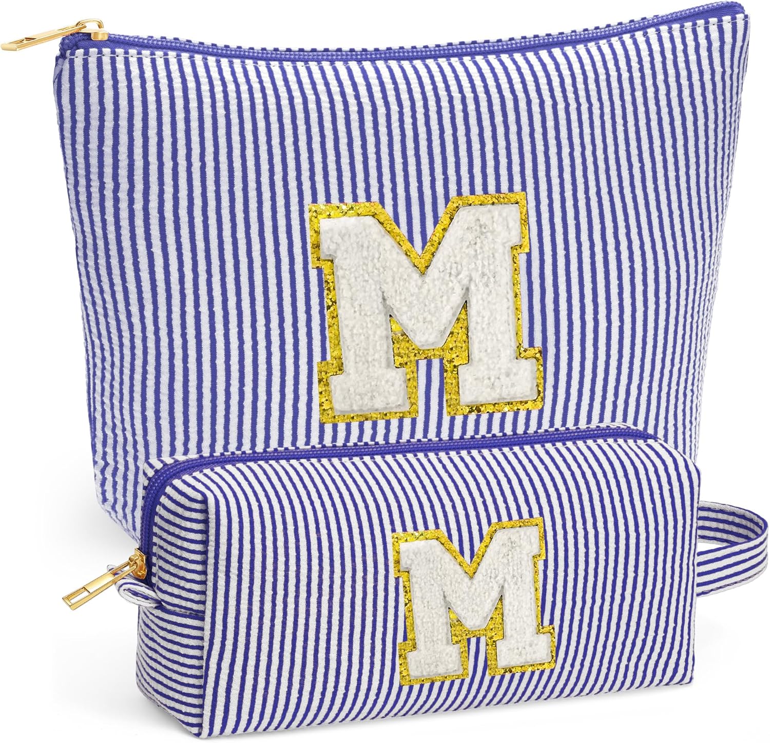 Initial Cosmetic Bag Set - Travel Bag Makeup Pouch, Makeup Bag with Zipper Make up Kit Preppy Stuff Birthday Gifts for Women Travel Essentials Travel Bag, Blue Letter M