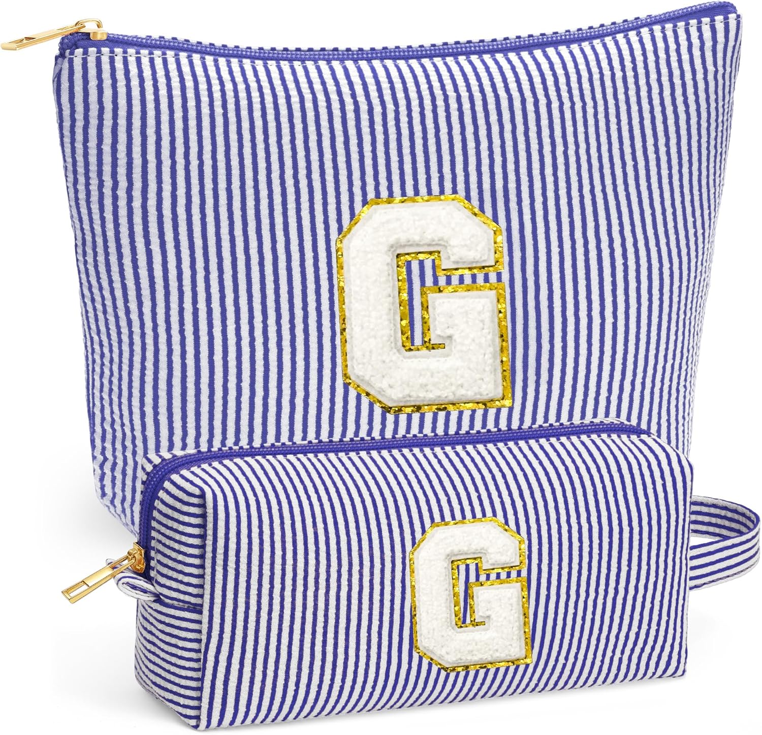 Travel Makeup Bag Organizer - Travel Essentials Toiletry Bag for Women, Initial Travel Toiletry Bag with Zipper | Preppy Stuff Birthday Gifts for Women Mom Daughter, Blue Letter G
