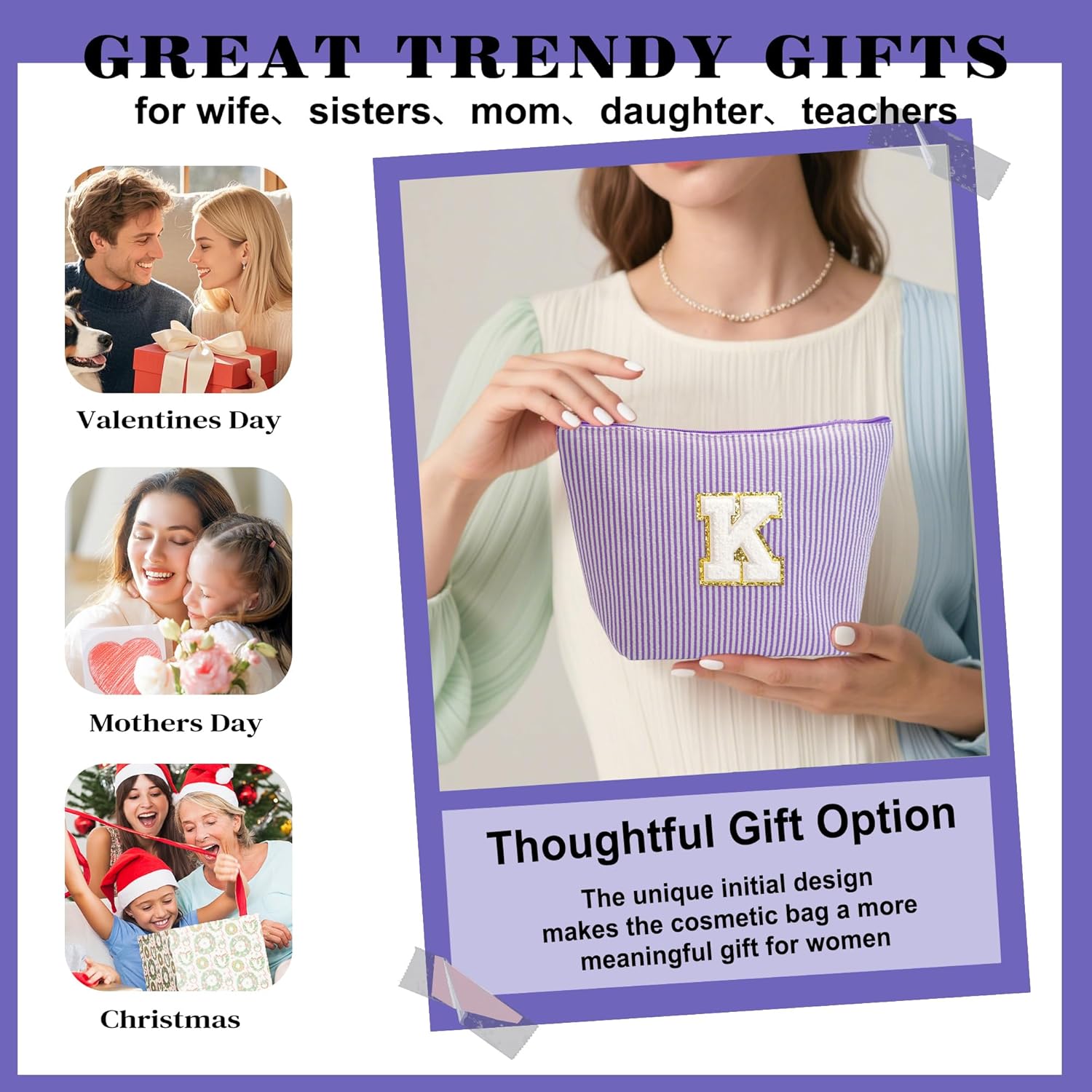 - PERSONALIZED GIFTS FOR WOMEN: The unique initial design makes this cosmetic bag a thoughtful gift for women, the personalized initials on this adorable cosmetic bag make it great for daughters, mothers, wives, friends, teachers...