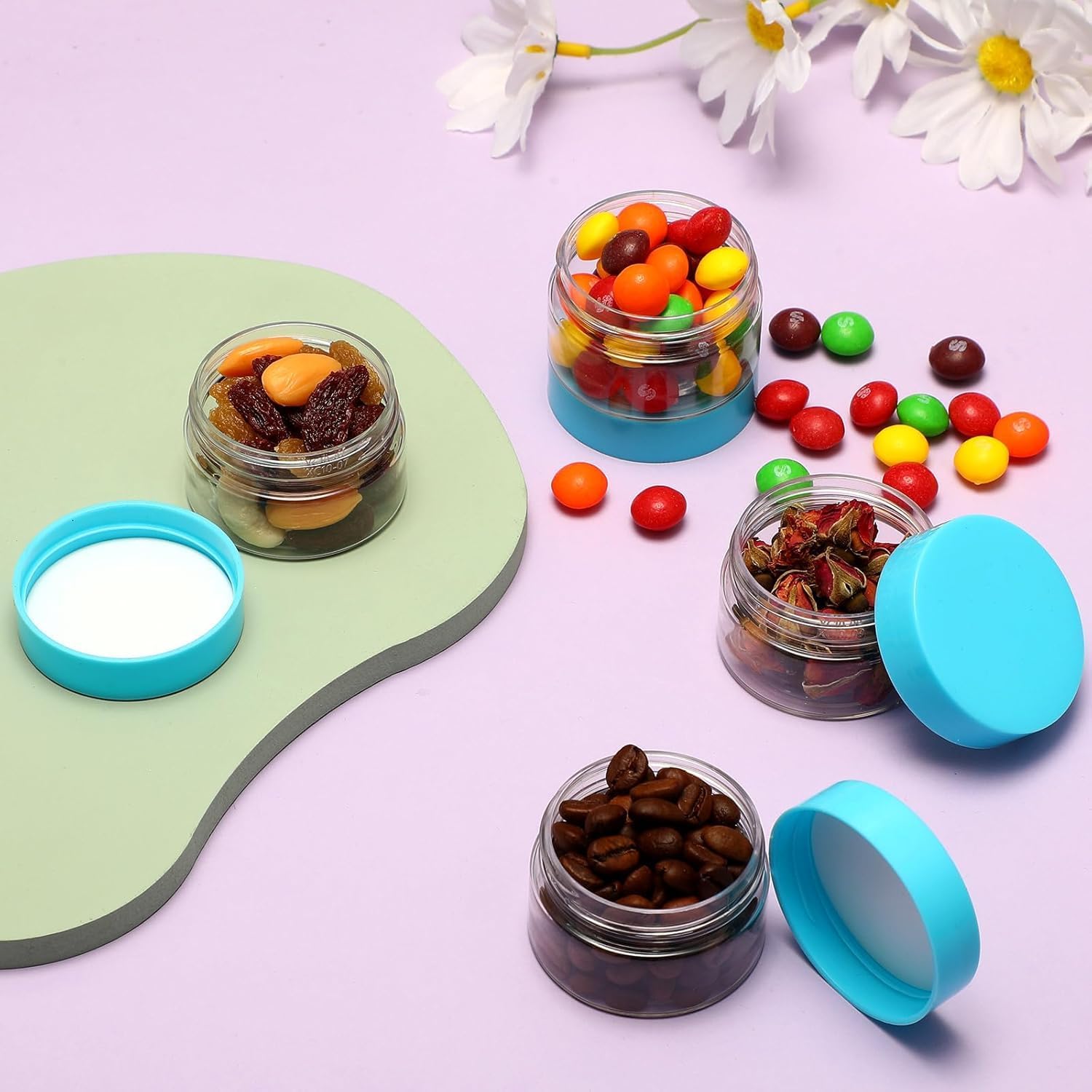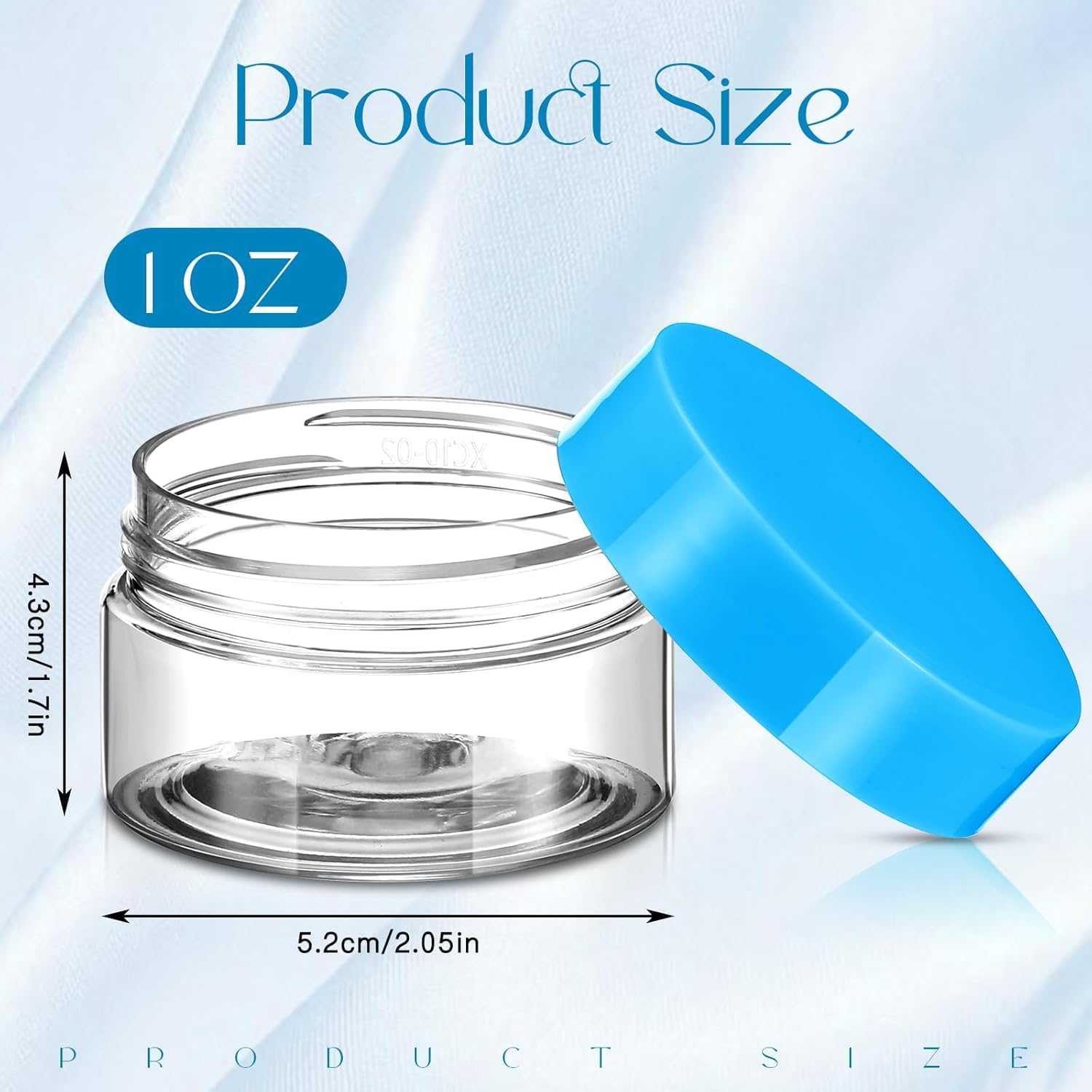 SATINIOR 12 Pack 1 oz Plastic Container Jars with Lids Round Clear Travel Cosmetic Container Slime Jars for Toiletries, Lotion, Cream, Ointments, Makeup, Rhinestone, Samples, Kitchen Storage(Blue)
