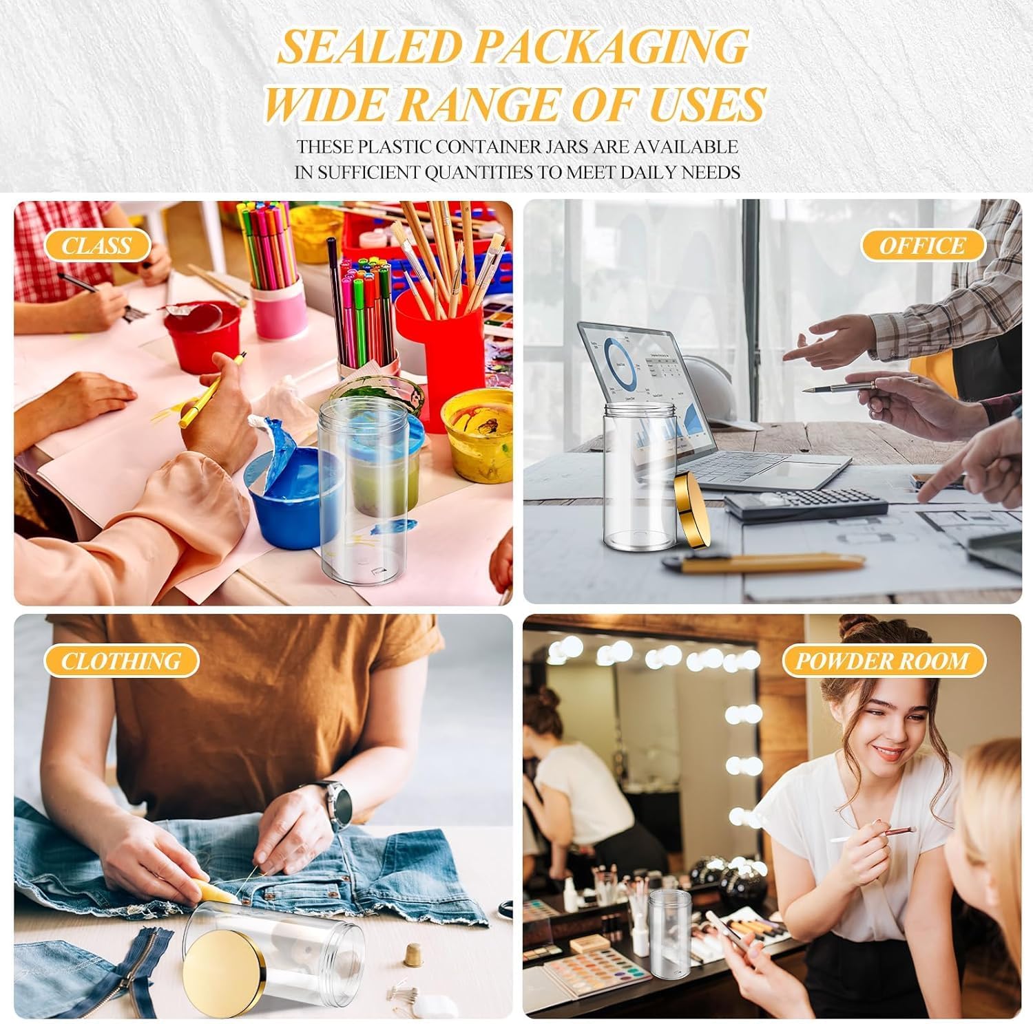 - Easy to Use: the plastic jars are straight sided and round with thick walls; They are reliable and resistant to impact