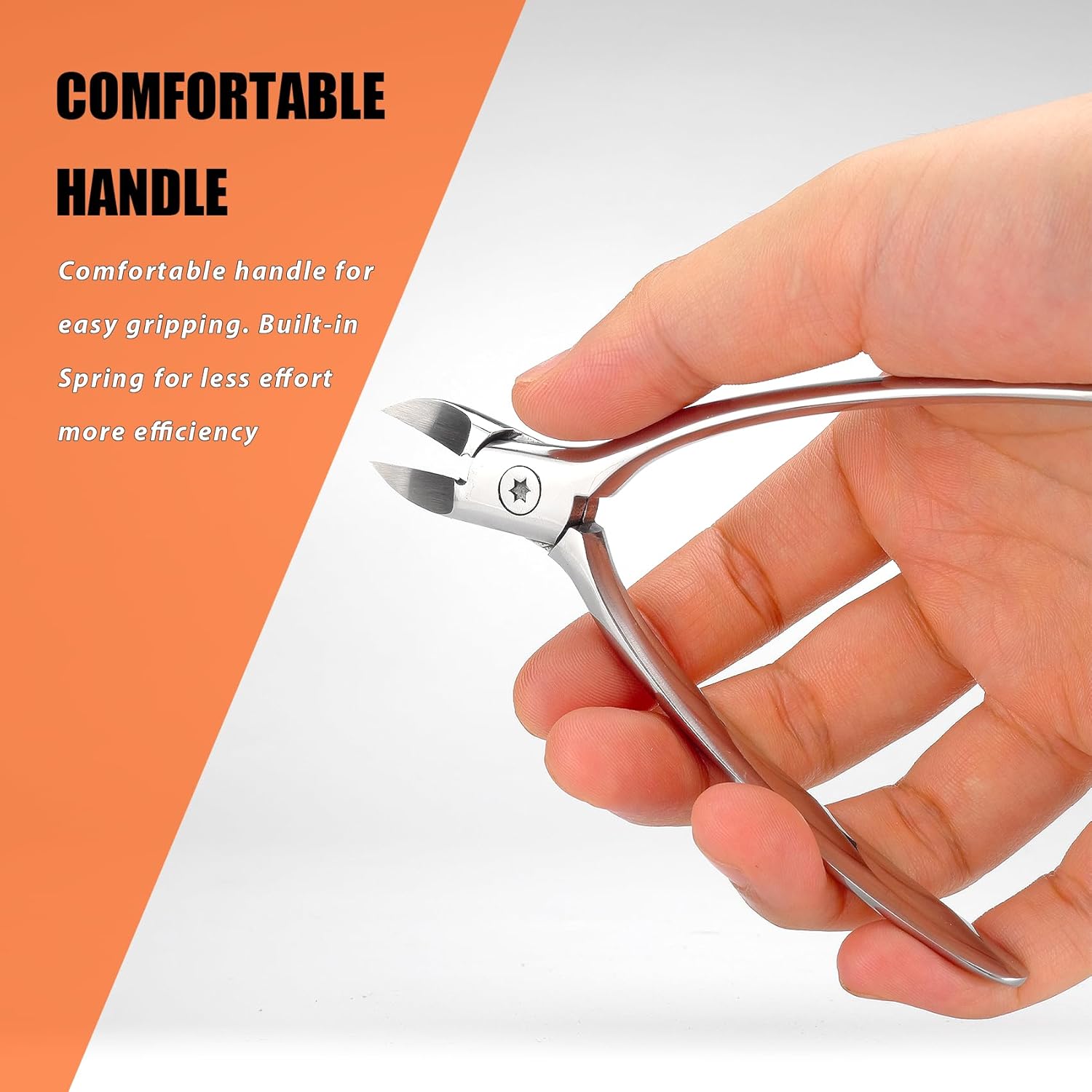 - Professional Tools - Wide open jaws allow for accurate trimming ingrown nails without injury. 18mm blade length allows for deeper into penetration to cut ingrown and thick toenail easily. 25 degree blade fits the curvature of the nail.