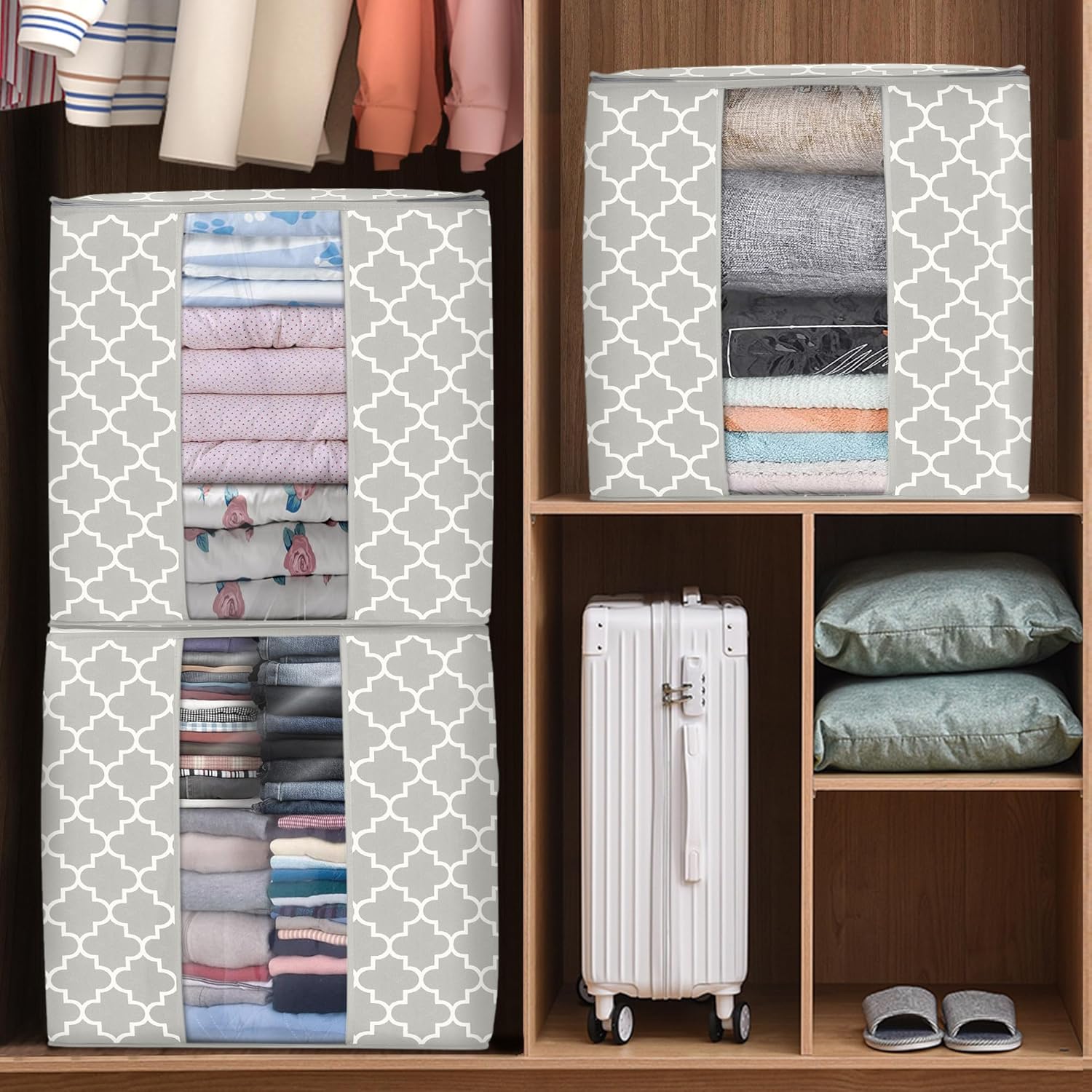 WISELIFE Storage Bags 3 Pack/100L Large Blanket Clothes Organization and Storage Containers for Comforters,Bedding, Foldable Organizer with Reinforced Handle, Clear Window, Sturdy Zippers,Lvory
