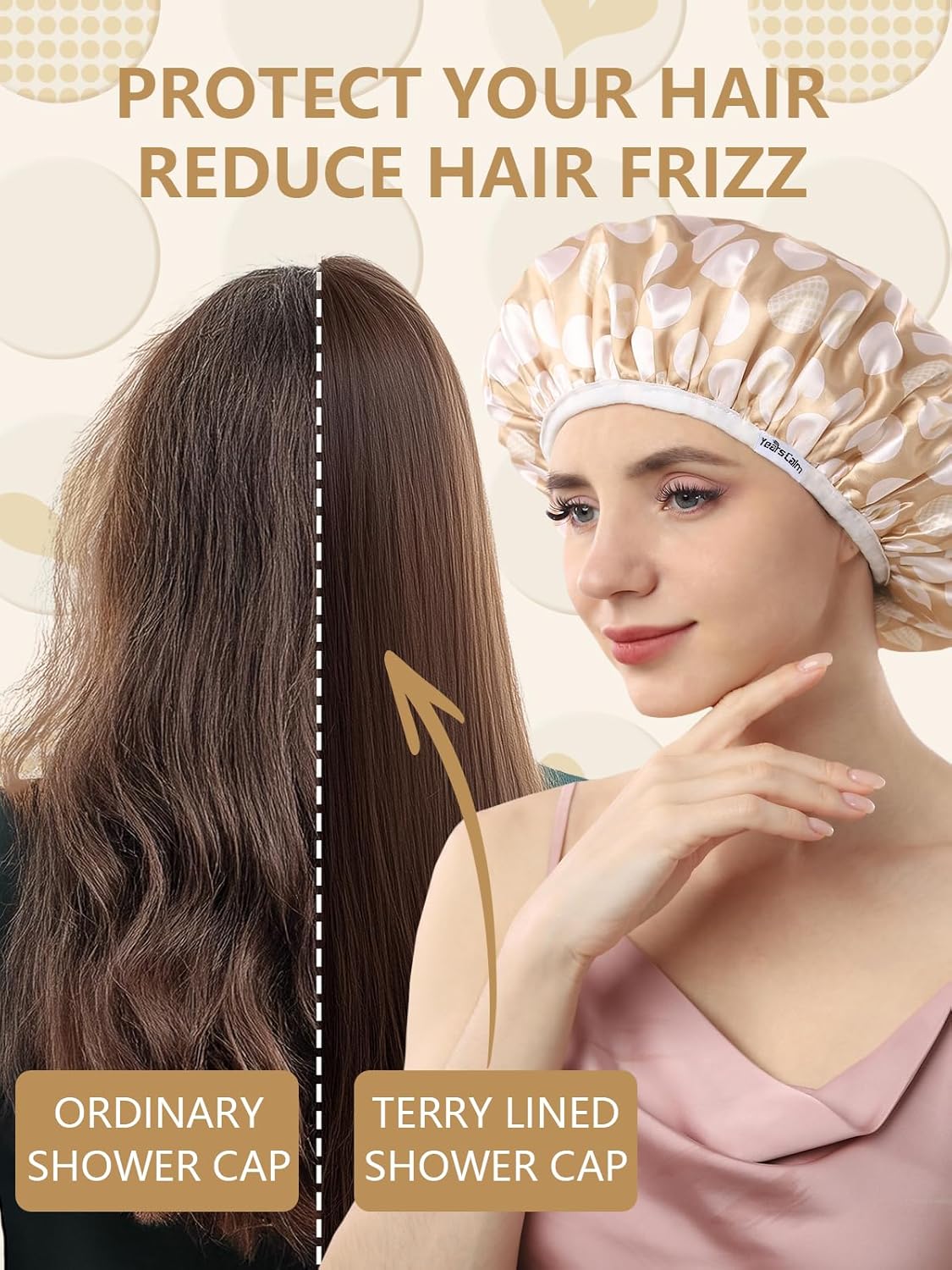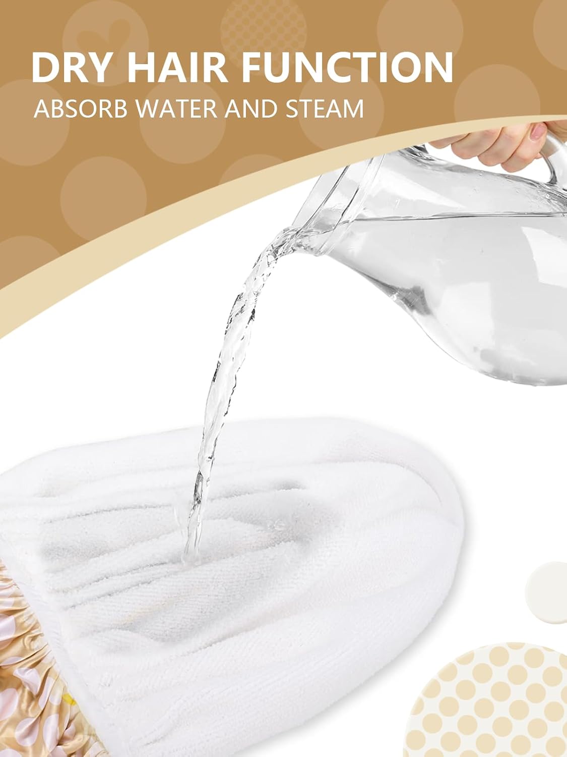 - Waterproof Material Upgrade: Waterproof memory foam has better waterproofing properties than ordinary coatings, preventing water from seeping in and sealing the head better. Terry cloth lined shower cap not only absorbs water but also prevents frizz