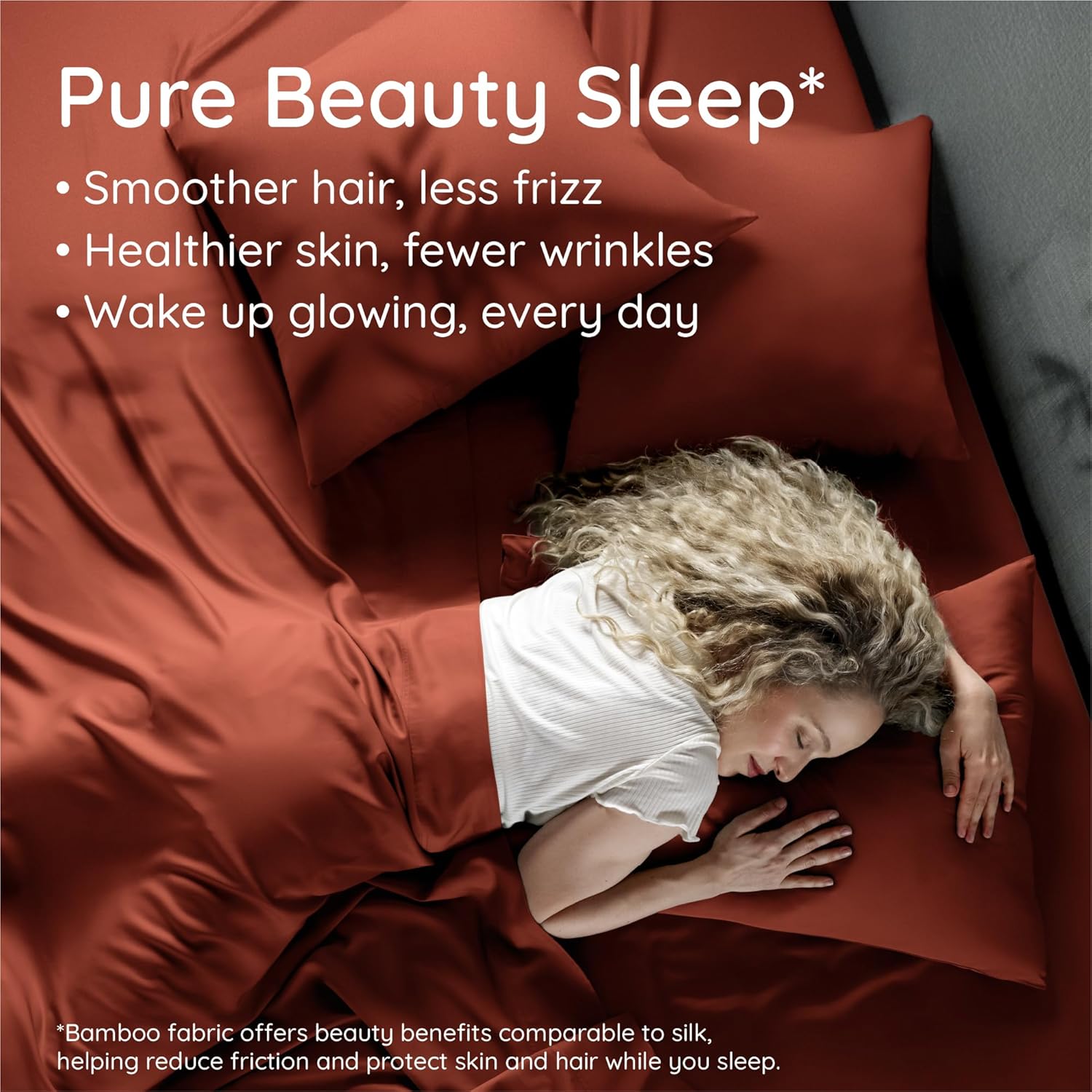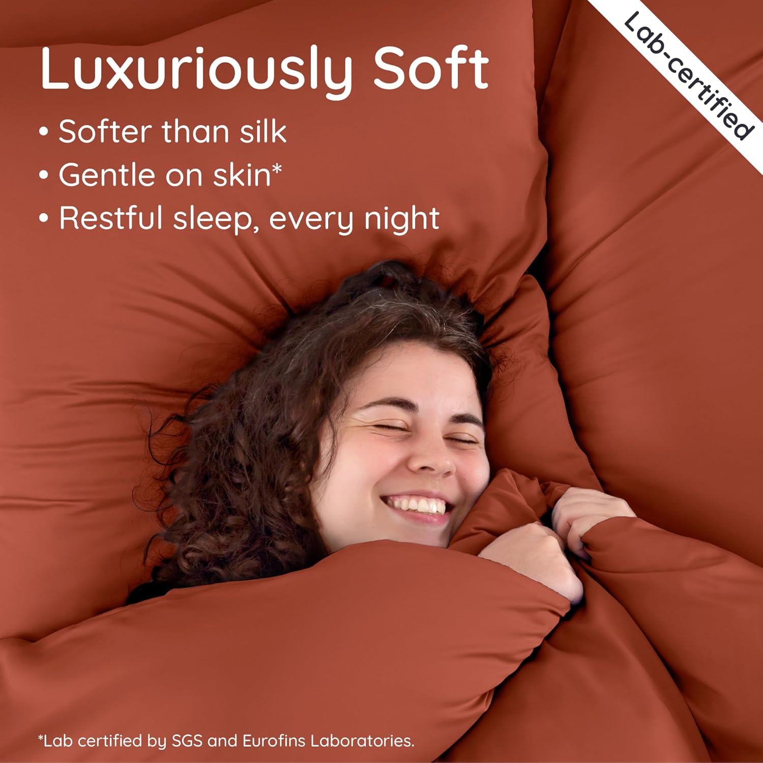 Bambaw 100% Viscose Derived from Bamboo Pillowcases Standard Size – Set of 2 Cooling Pillow Cases Standard Size, Breathable & Soft Pillow Case with Envelope Closure, Anti Acne Pillowcase (Terracotta)