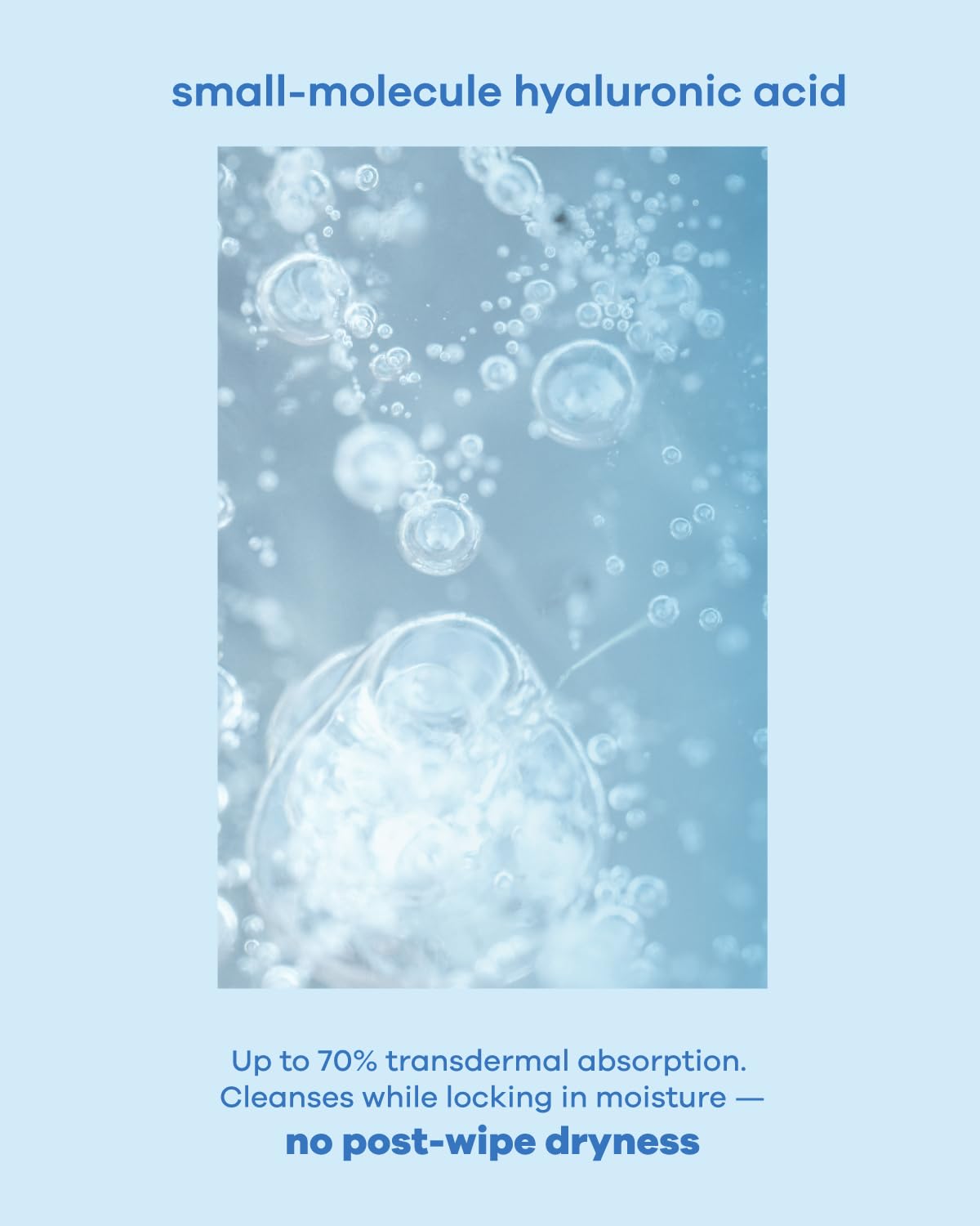 - Hydrating and Gentle:Infused with small-molecule hyaluronic acid that penetrates deeply, providing up to 70% transdermal absorption. Cleanses while locking in moisture β no post-wipe dryness.